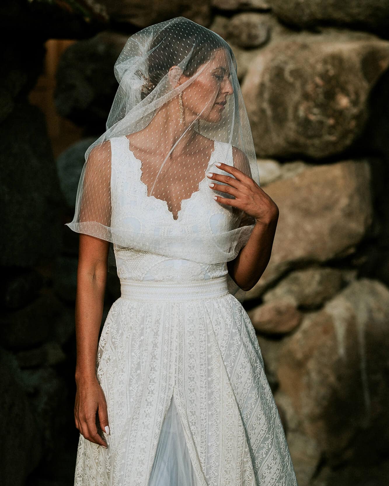 Biała suknia ślubna to dla wielu panien młodych synonim weselnej elegancji. Ten model z kolekcji Barcelona został wykonany z przepięknej bawełnianej, beżowej koronki i uzupełniony tiulową wstawką, która nadaje mu dodatkowej lekkości. Beżowa koronka w połączeniu z białą podszewką sprawia, że całość wygląda przepięknie i świeżo.