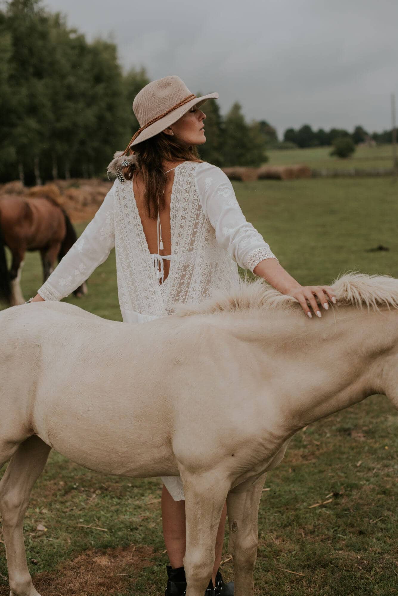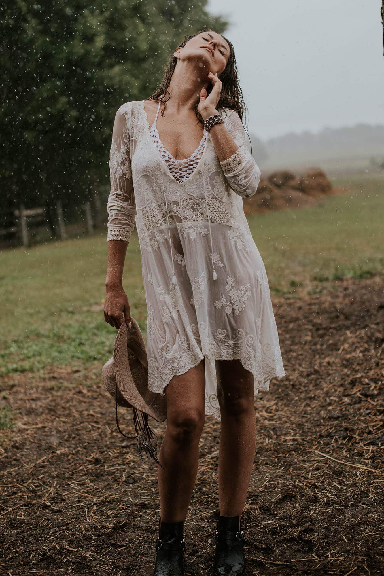 Plenerowe wesele na plaży ze stopami zanurzonymi w ciepłym piasku i uspokajającym szumem fal jako muzycznym tłem całej ceremonii? A może odosobniona polana i unoszący się w powietrzu zapach świeżo skoszonego siana? To brzmi jak bajka! Trudno się dziwić, że plenerowe śluby mają tyle zwolenniczek! Jeśli jesteś jedną z nich i poszukujesz czegoś pasującego do tych okoliczności, ta propozycja powinna Cię zainteresować. Krótkie sukienki ślubne to rozwiązanie dla Panien Młodych ceniących nieszablonowe rozwiązania w modzie ślubnej oraz pragnących wyeksponować nogi. Ta krótka suknia z długim rękawem została uszyta z bawełnianej tkaniny z bogatymi koronkowymi haftami w odcieniu beżu. Jest wyważona oraz delikatna – idealnie sprawdzi się jako sukienka na poprawiny lub właśnie na skromny ślub w plenerze, odbywający się w bliskim otoczeniu natury. Koronki pokrywające suknię subtelnie odsłaniają ciało, a wiązanie na karku stanowi piękne zwieńczenie całości i dodaje jej delikatności. Zwróć też uwagę na kwiatowe wzory, w jakie układają się pokrywające tkaninę koronki oraz na wyjątkowo dopracowany detal – elegancko wykończone rękawy. To idealna sukienka na poprawiny czy ślub, ale także na wiele innych okazji. Głęboki dekolt z przodu i seksowne wycięcie na plecach przez całą długość sprawi, że ta sukienka świetnie sprawdzi się na wieczór, zaś jej zwiewność pozwala na założenie jej też na mniej zobowiązujące wyjścia – tak naprawdę wszystko zależy od dodatków! Gdy dobierzesz do niej sandałki czy trampki to latem sprawdzi się świetnie także na co dzień. Gdy zestawisz ją z ulubionymi szpilkami, stanie się idealną propozycją na wyjątkowe wyjścia, a jeśli założysz do niej halkę lub top i połączysz z botkami i kapeluszem, zyskasz stylizację doskonale wpisującą się w styl boho. Dodatkowym atutem cechującym krótkie, bawełniane sukienki ślubne z kolekcji Barcelona jest możliwość zafarbowania koronek na dowolny kolor. Ciekawy efekt cieniowania występujący podczas tego procesu nadaje każdej sukni indywidualny charakter.