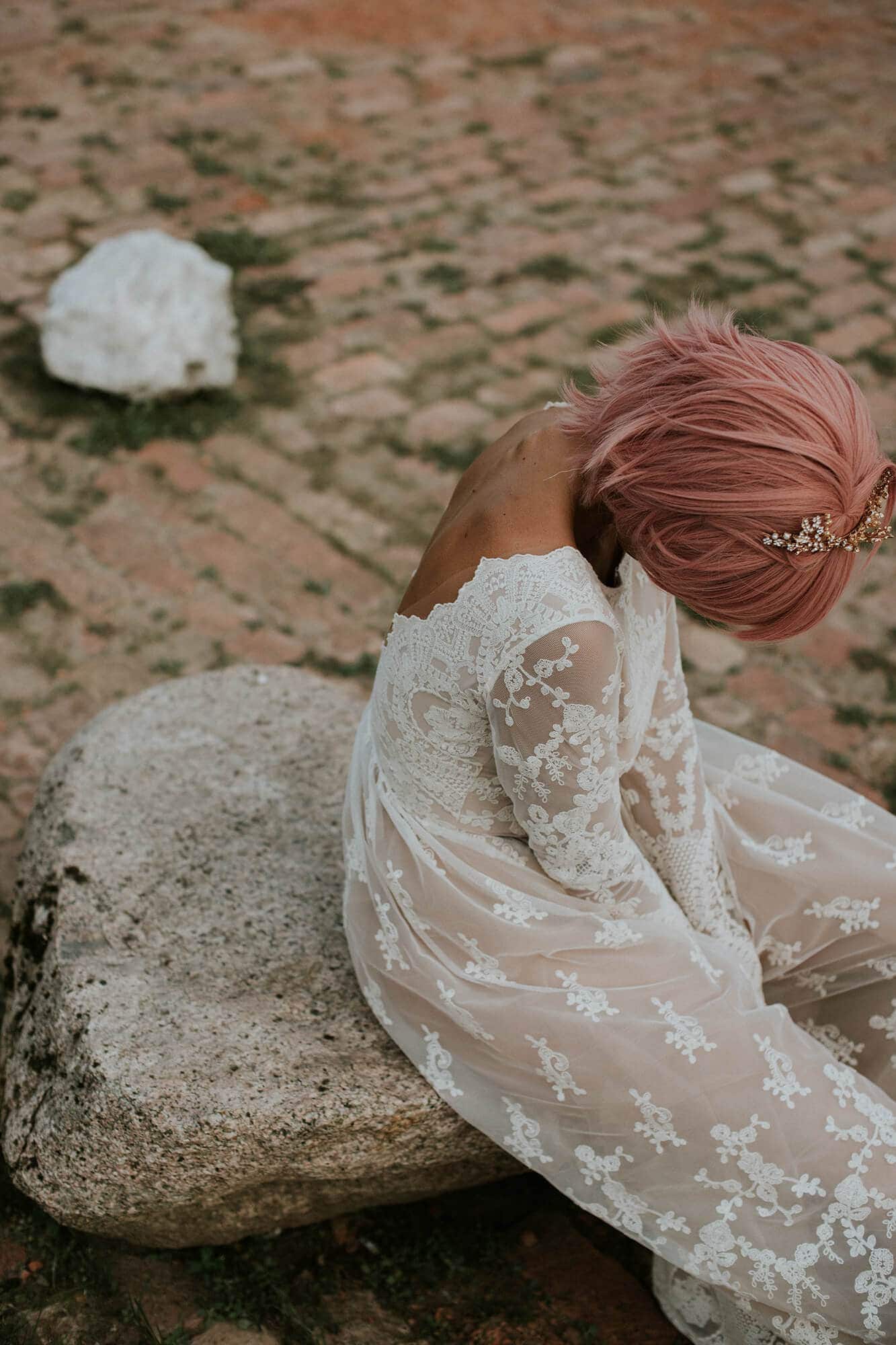 Twoją suknię uszyjemy ze sprawdzonych i przetestowanych przez nas materiałów. W tej sukni dominuje lekka i oddychająca bawełna, jedynie wstawki są z elastycznej koronki. Tkanina ta wprawdzie nie jest tak elastyczna jak nasze koronki i wymaga prasowania, ale jest naturalna i wyjątkowo przyjazna twojej skórze. A jeśli zdecydujesz, by po ślubie przerobić swoją suknię tak, byś mogła ją nosić na co dzień, to z łatwością ją zafarbujesz w profesjonalnej farbiarni.