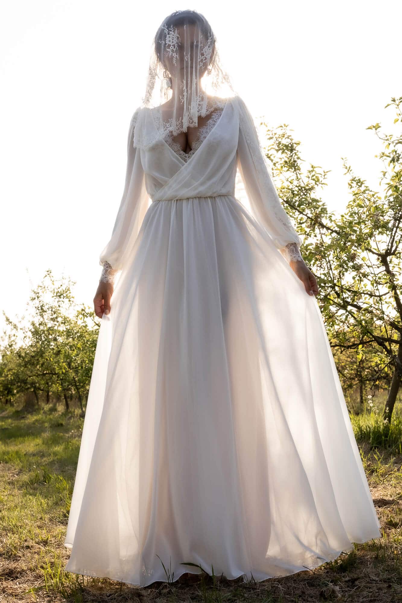 Uszyta ze sprawdzonych i przetestowanych przez nas materiałów. Używane przez nas koronki są mięciutkie, a dzięki swej lekkości cudownie układają się na sylwetce i pięknie wirują w tańcu. Ich elastyczność sprawia, że pracują z Twoim ciałem. Zapewniają komfort rosnącemu ciążowemu brzuszkowi. Praktycznie wszystkie nasze koronki są łatwe do prania w domowej pralce i niegniotące, dzięki czemu swoją suknię spokojnie możesz spakować do walizki i zabrać na romantyczną sesję poślubną.