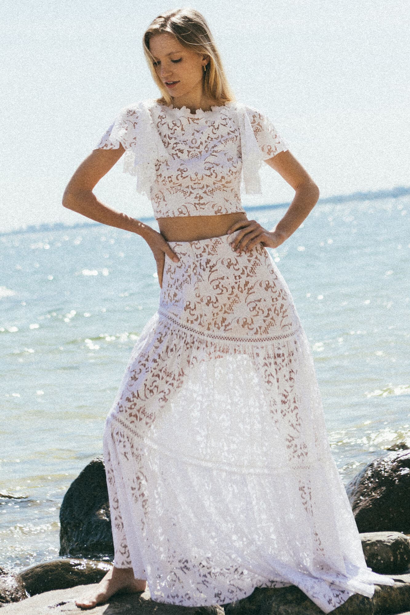 Uszyta ze sprawdzonych i przetestowanych przez nas materiałów. Używane przez nas koronki są mięciutkie, a dzięki swej lekkości cudownie układają się na sylwetce i pięknie wirują w tańcu. Ich elastyczność sprawia, że pracują z Twoim ciałem. Zapewniają komfort rosnącemu ciążowemu brzuszkowi. Praktycznie wszystkie nasze koronki są łatwe do prania w domowej pralce i niegniotące, dzięki czemu swoją suknię spokojnie możesz spakować do walizki i zabrać na romantyczną sesję poślubną.