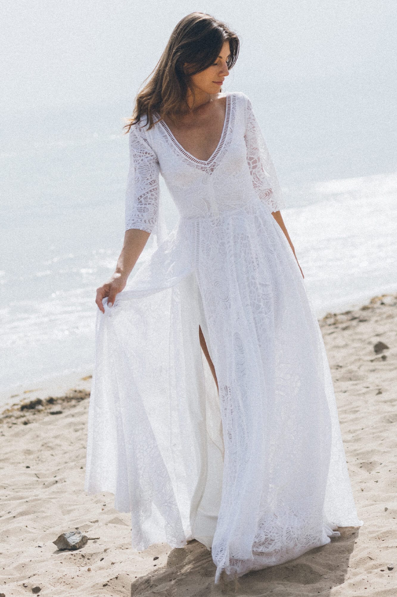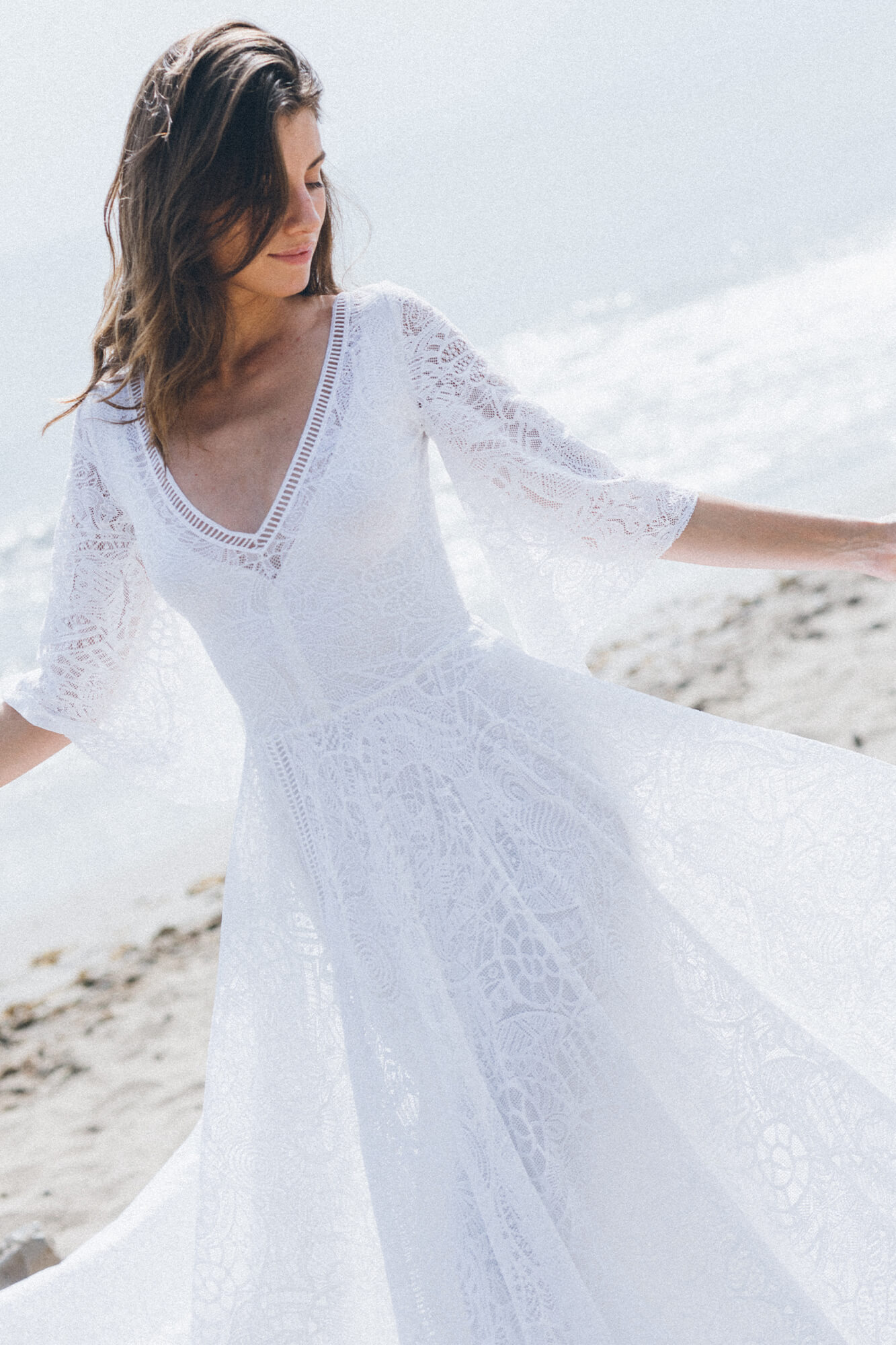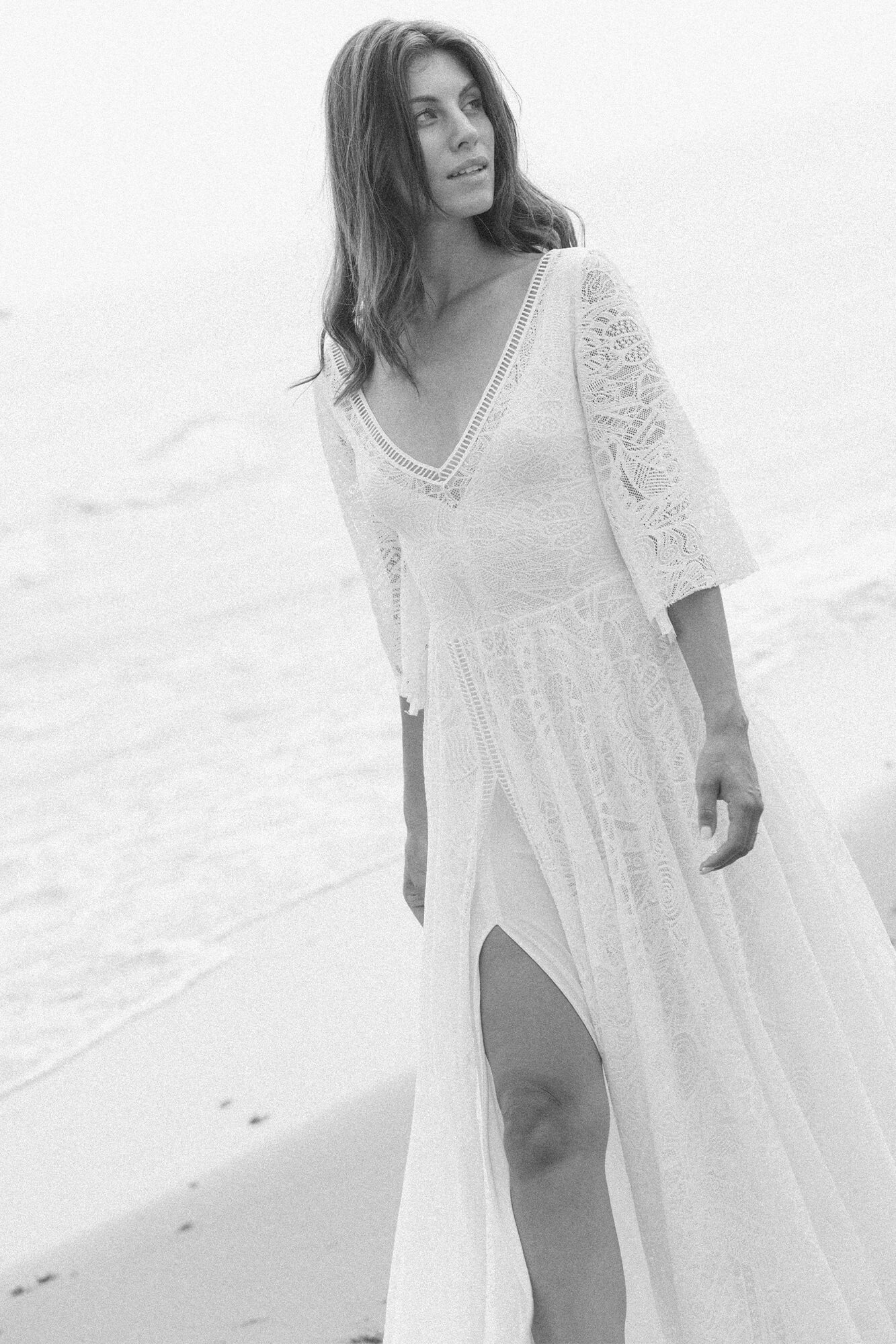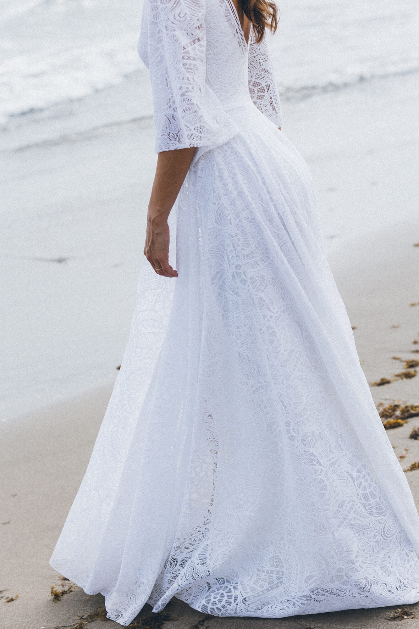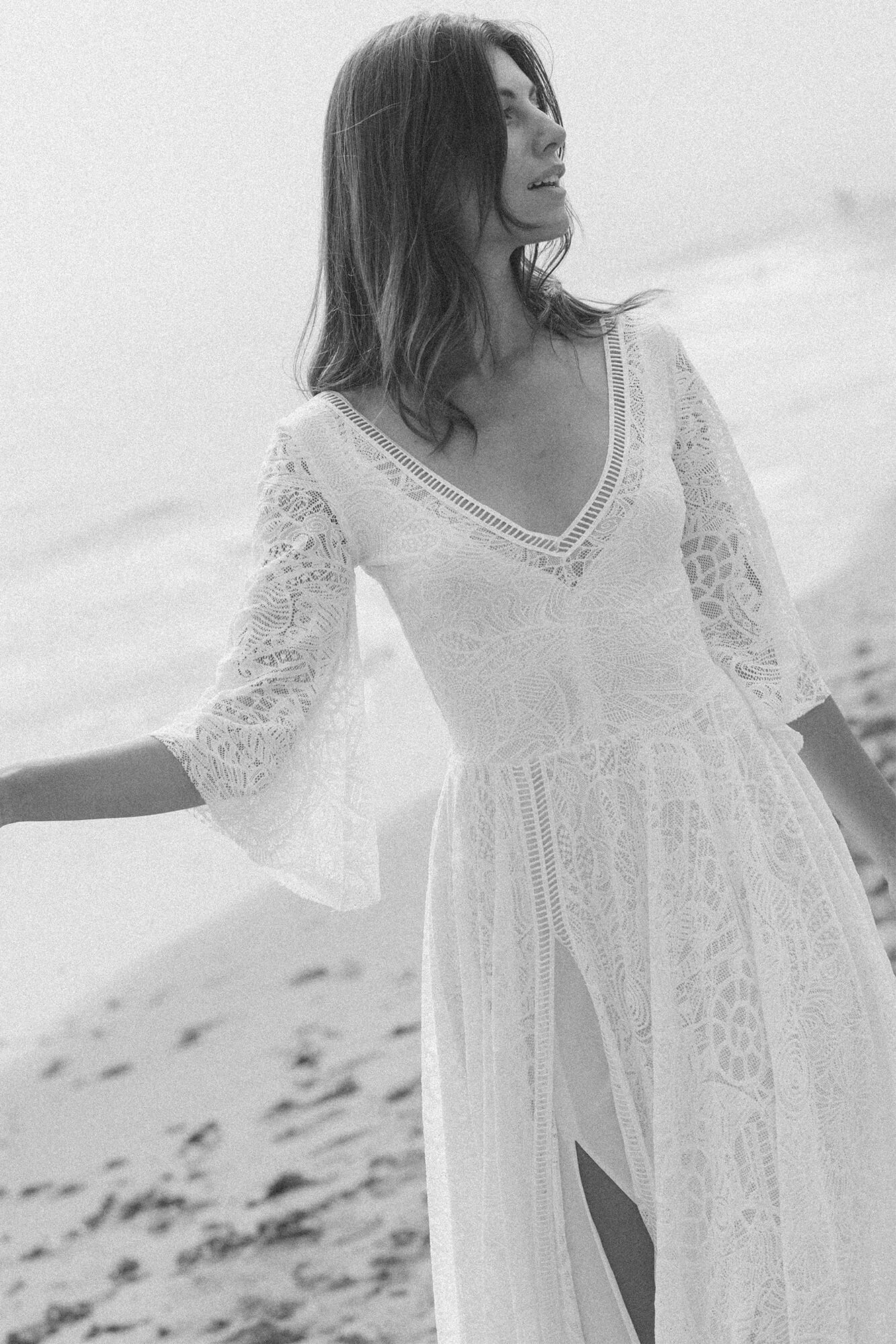 Uszyta ze sprawdzonych i przetestowanych przez nas materiałów. Używane przez nas koronki są mięciutkie, a dzięki swej lekkości cudownie układają się na sylwetce i pięknie wirują w tańcu. Ich elastyczność sprawia, że pracują z Twoim ciałem. Zapewniają komfort rosnącemu ciążowemu brzuszkowi. Praktycznie wszystkie nasze koronki są łatwe do prania w domowej pralce i niegniotące, dzięki czemu swoją suknię spokojnie możesz spakować do walizki i zabrać na romantyczną sesję poślubną.