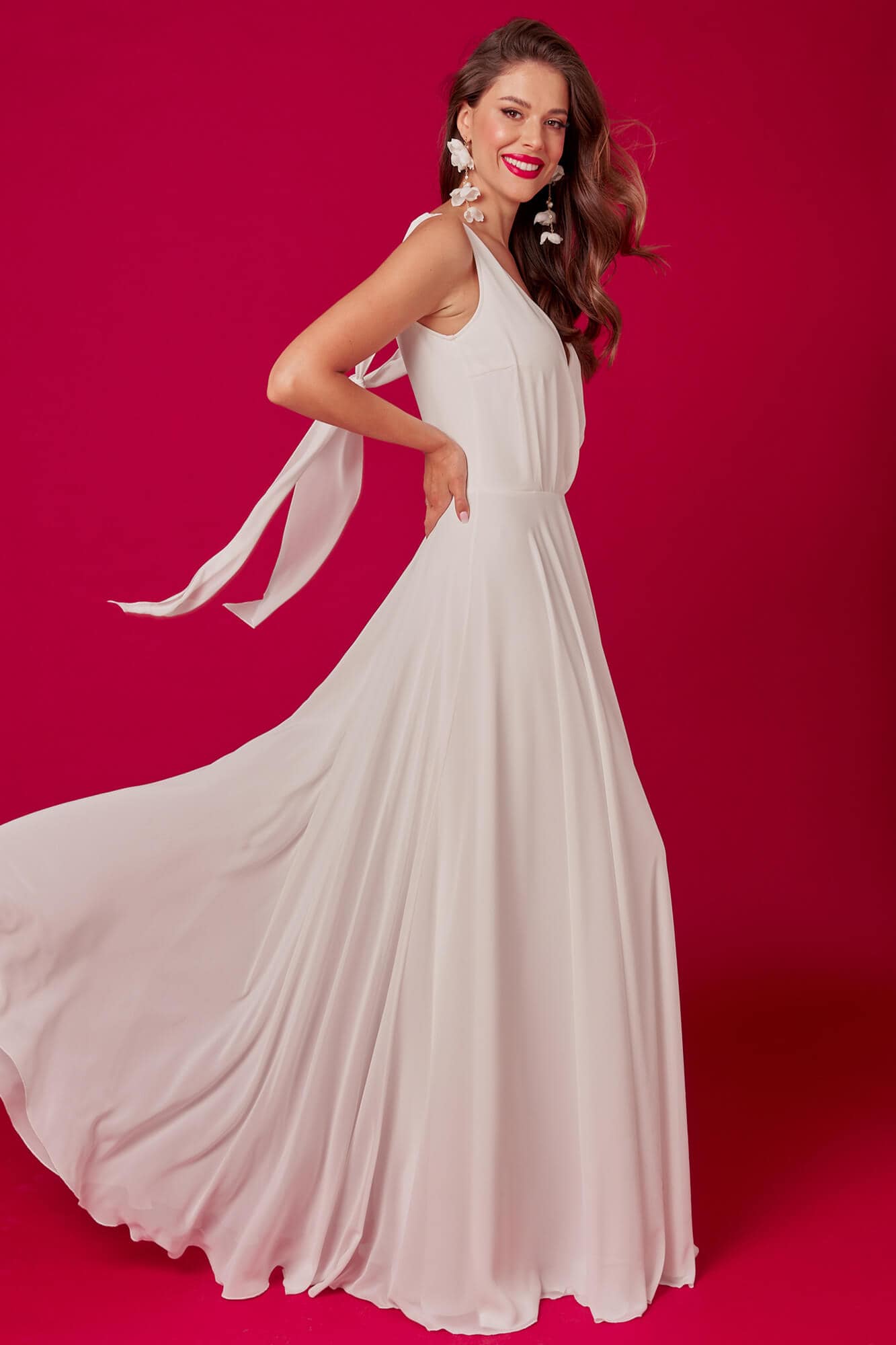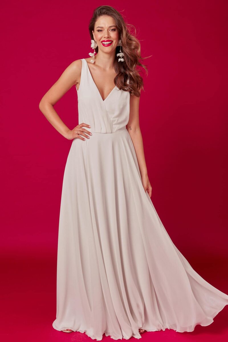 Twoja suknia zostanie uszyta z niesamowicie miękkiego, lekkiego i lejącego szyfonu, który będzie się poruszał nawet przy lekkim ruchu powietrza. Jeśli marzysz o klasycznej sukni ślubnej, ale przeraża Cię jej ciężar lub niewygodny gorset to jest to idealne rozwiązanie dla Ciebie! Ta suknia jest tak lekka, że możesz zapomnieć ją założyć! A podszewka tak elastyczna, że nie będziesz chciała jej zdjąć! Diabeł tkwi w szczegółach - zobacz subtelne wykończenia.