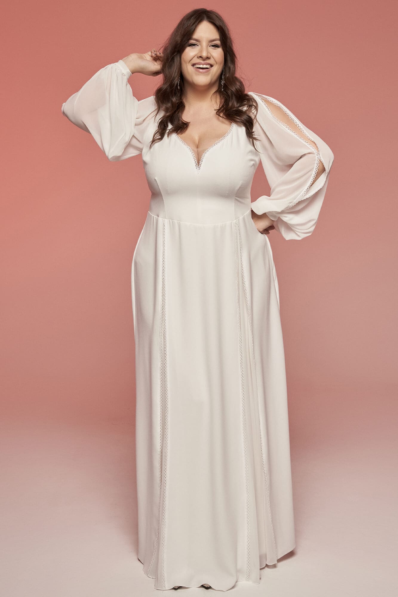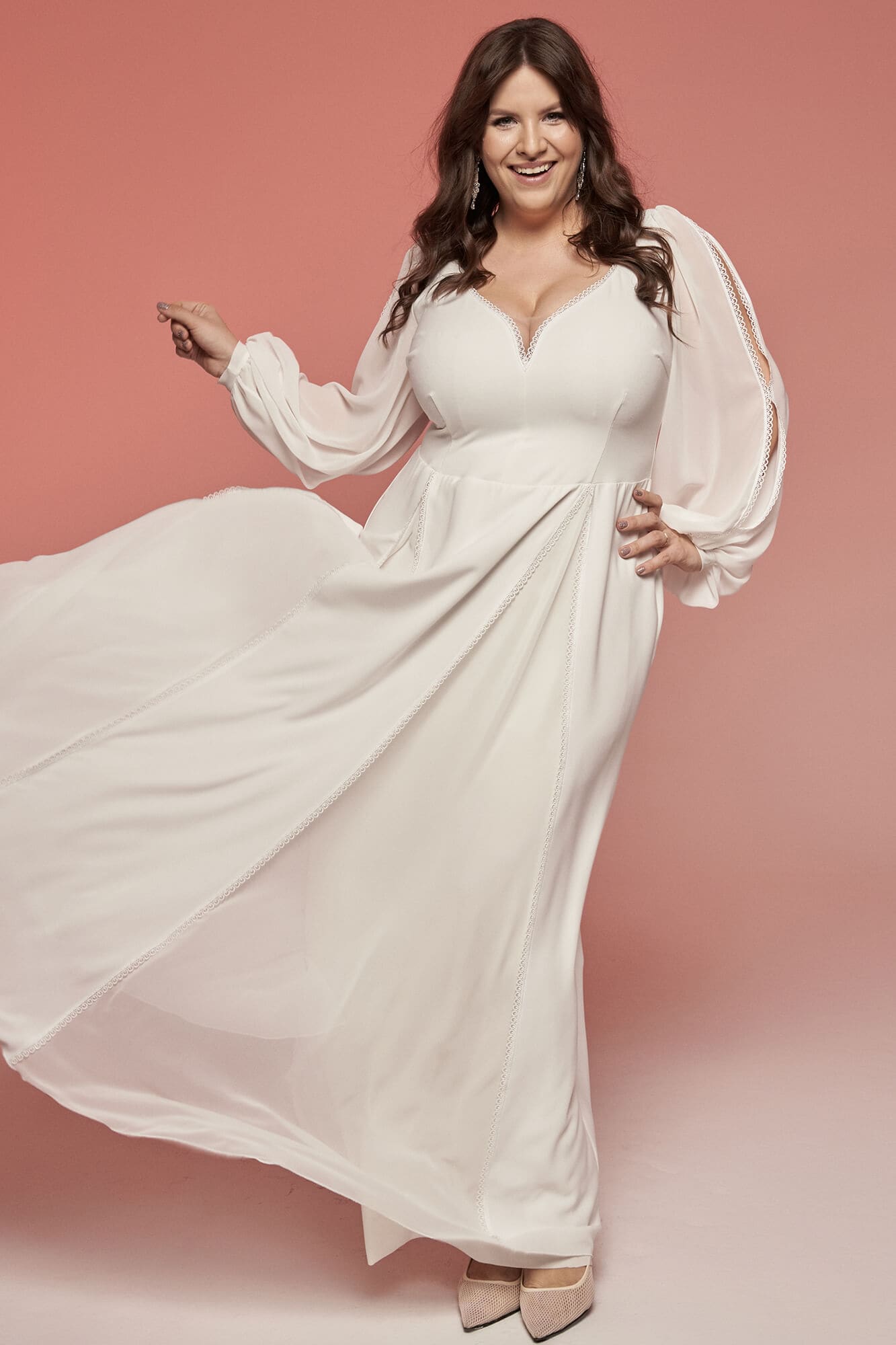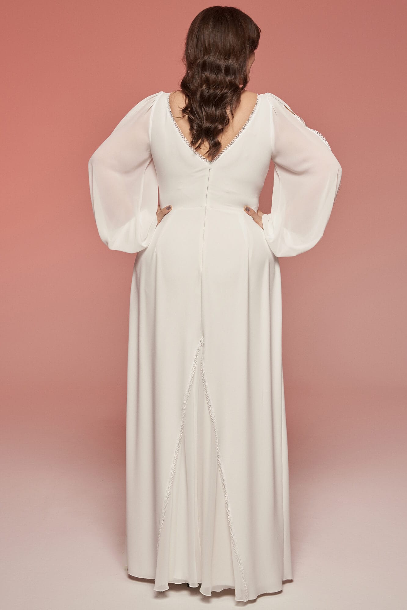 Twoja suknia zostanie uszyta z niesamowicie miękkiego, lekkiego i lejącego szyfonu, który będzie się poruszał nawet przy lekkim ruchu powietrza. Jeśli marzysz o klasycznej sukni ślubnej, ale przeraża Cię jej ciężar lub niewygodny gorset to jest to idealne rozwiązanie dla Ciebie! Ta suknia jest tak lekka, że możesz zapomnieć ją założyć! A podszewka tak elastyczna, że nie będziesz chciała jej zdjąć! Diabeł tkwi w szczegółach - zobacz subtelne wykończenia.
