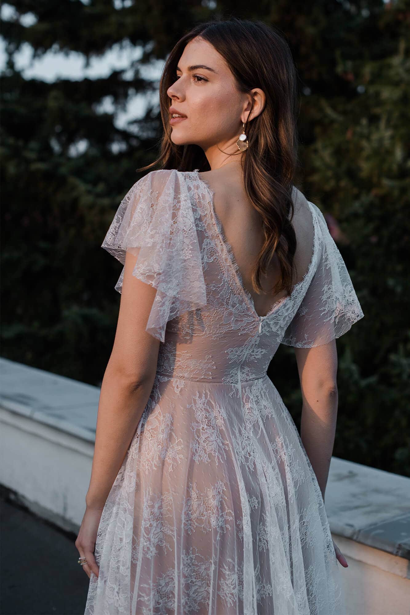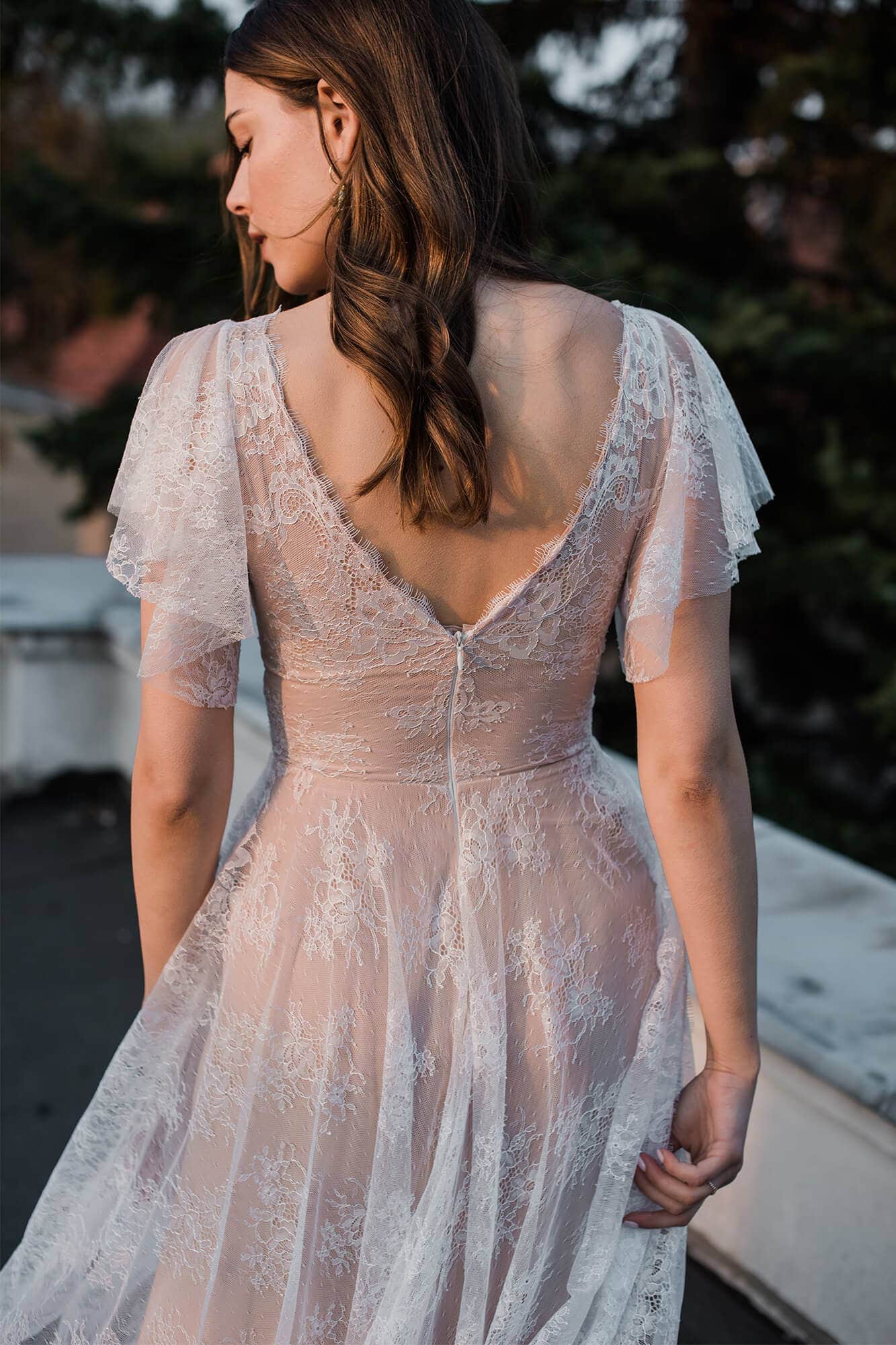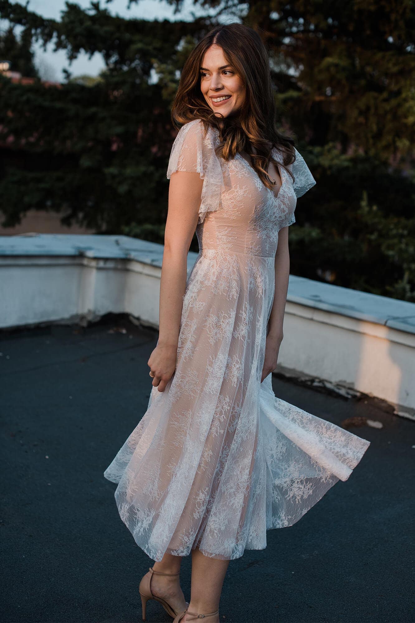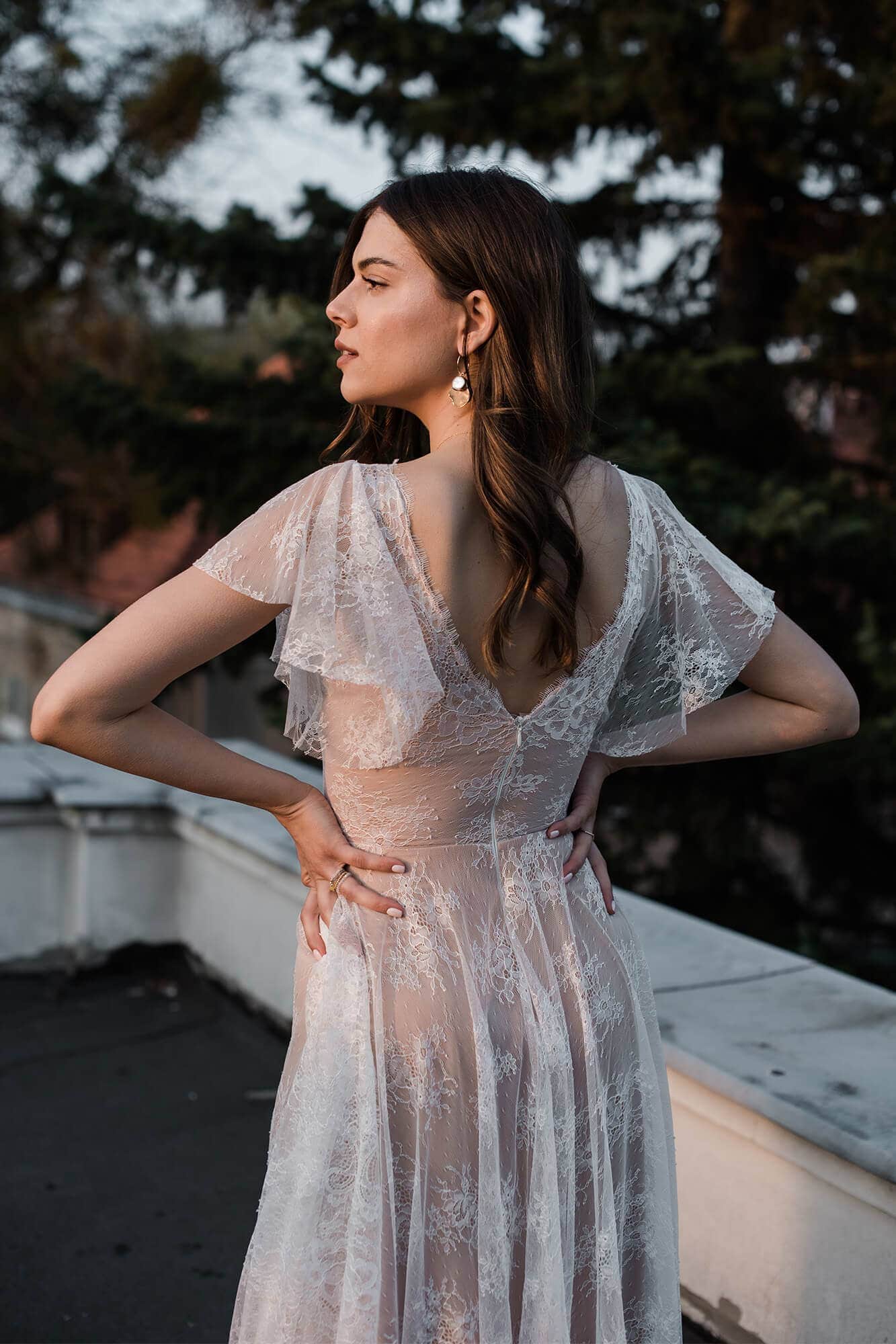 Uszyta ze sprawdzonych i przetestowanych przez nas materiałów. Używane przez nas koronki są mięciutkie, a dzięki swej lekkości cudownie układają się na sylwetce i pięknie wirują w tańcu. Ich elastyczność sprawia, że pracują z Twoim ciałem. Zapewniają komfort rosnącemu ciążowemu brzuszkowi. Praktycznie wszystkie nasze koronki są łatwe do prania w domowej pralce i niegniotące, dzięki czemu swoją suknię spokojnie możesz spakować do walizki i zabrać na romantyczną sesję poślubną.