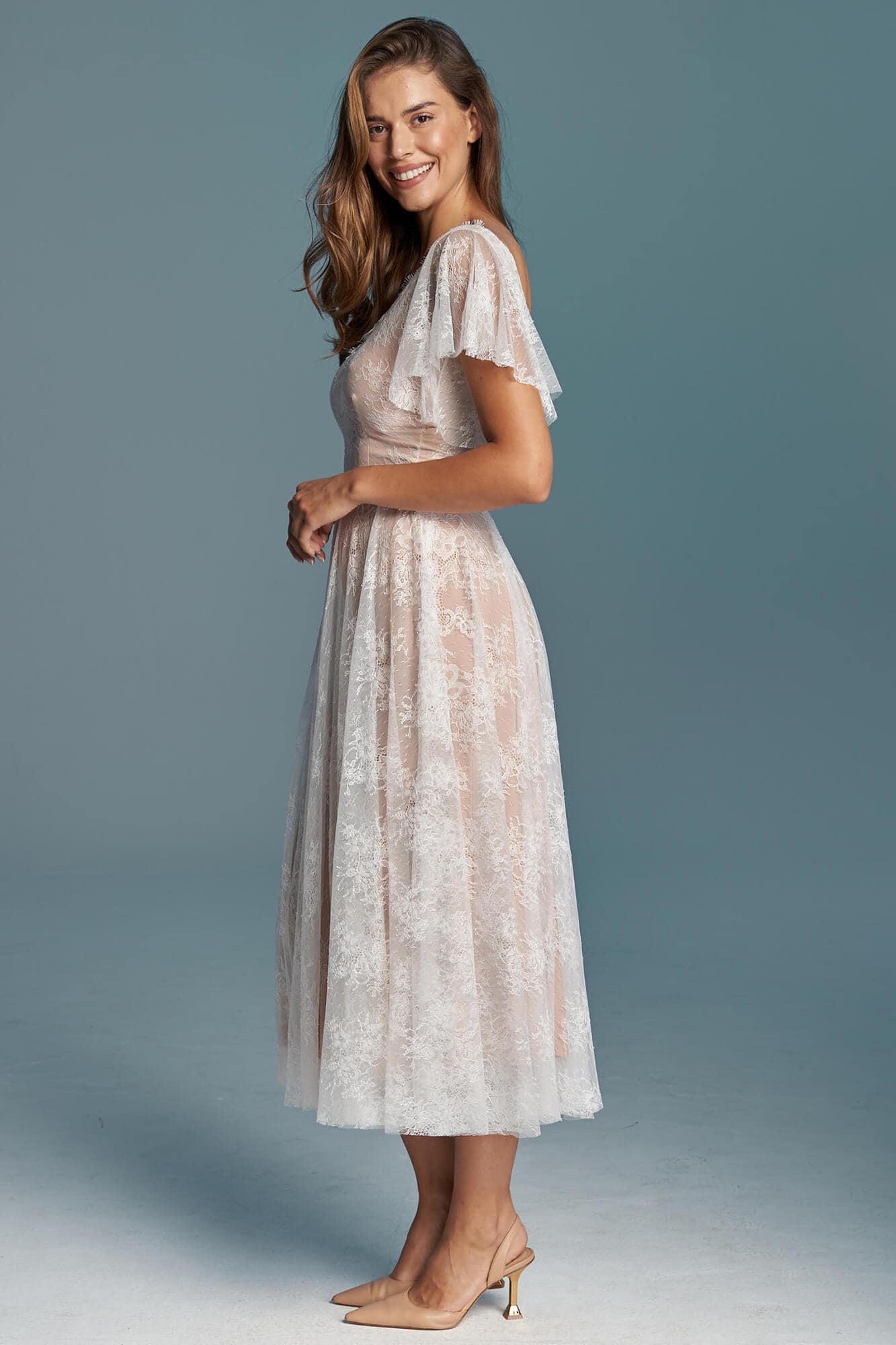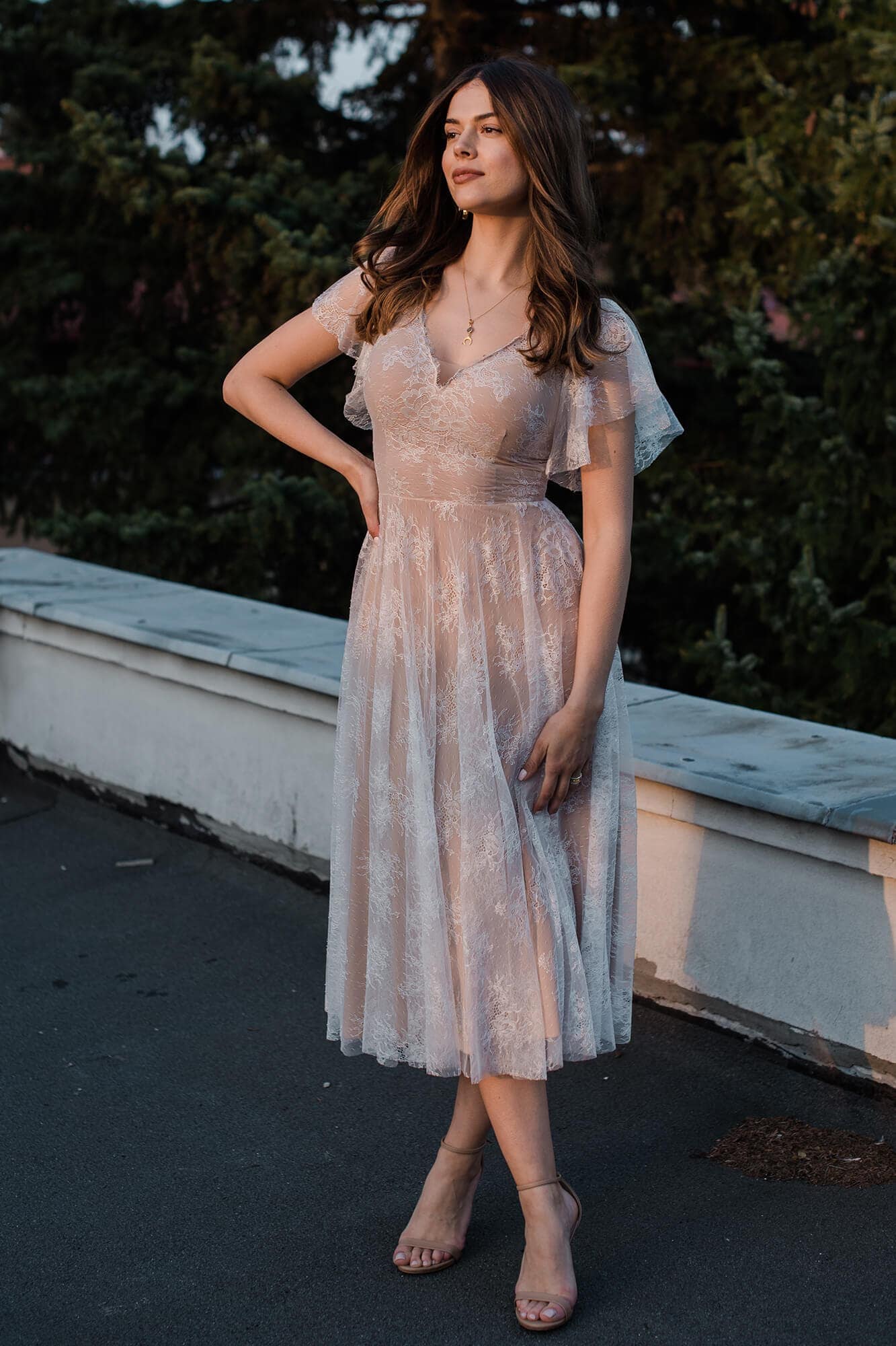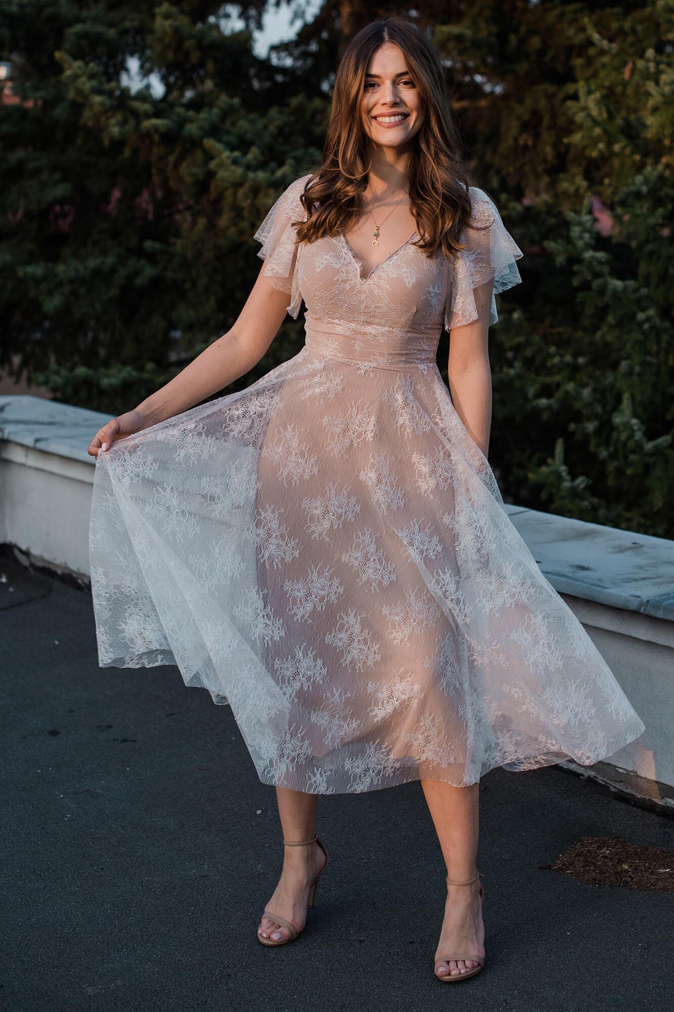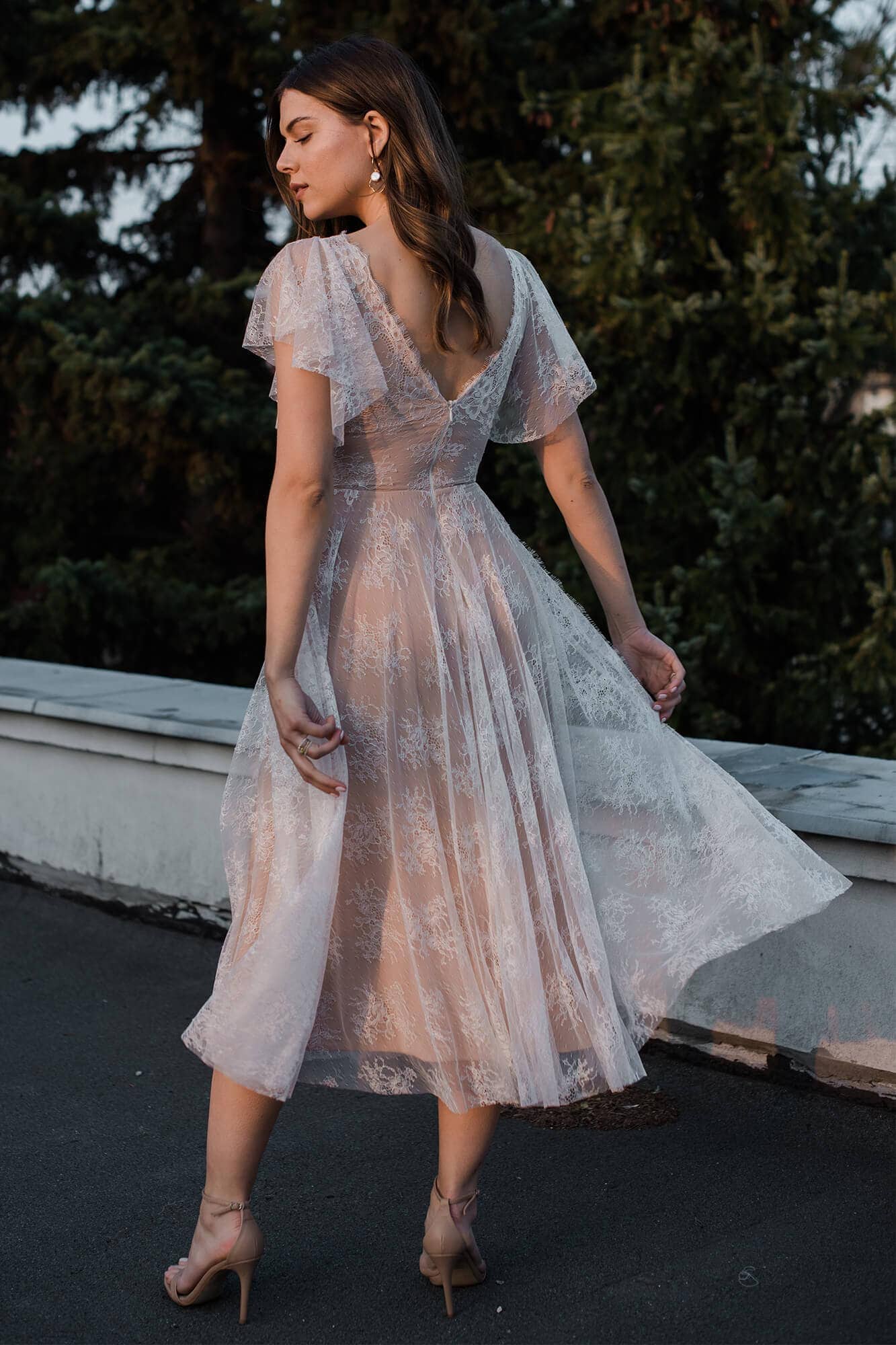 Uszyta ze sprawdzonych i przetestowanych przez nas materiałów. Używane przez nas koronki są mięciutkie, a dzięki swej lekkości cudownie układają się na sylwetce i pięknie wirują w tańcu. Ich elastyczność sprawia, że pracują z Twoim ciałem. Zapewniają komfort rosnącemu ciążowemu brzuszkowi. Praktycznie wszystkie nasze koronki są łatwe do prania w domowej pralce i niegniotące, dzięki czemu swoją suknię spokojnie możesz spakować do walizki i zabrać na romantyczną sesję poślubną.