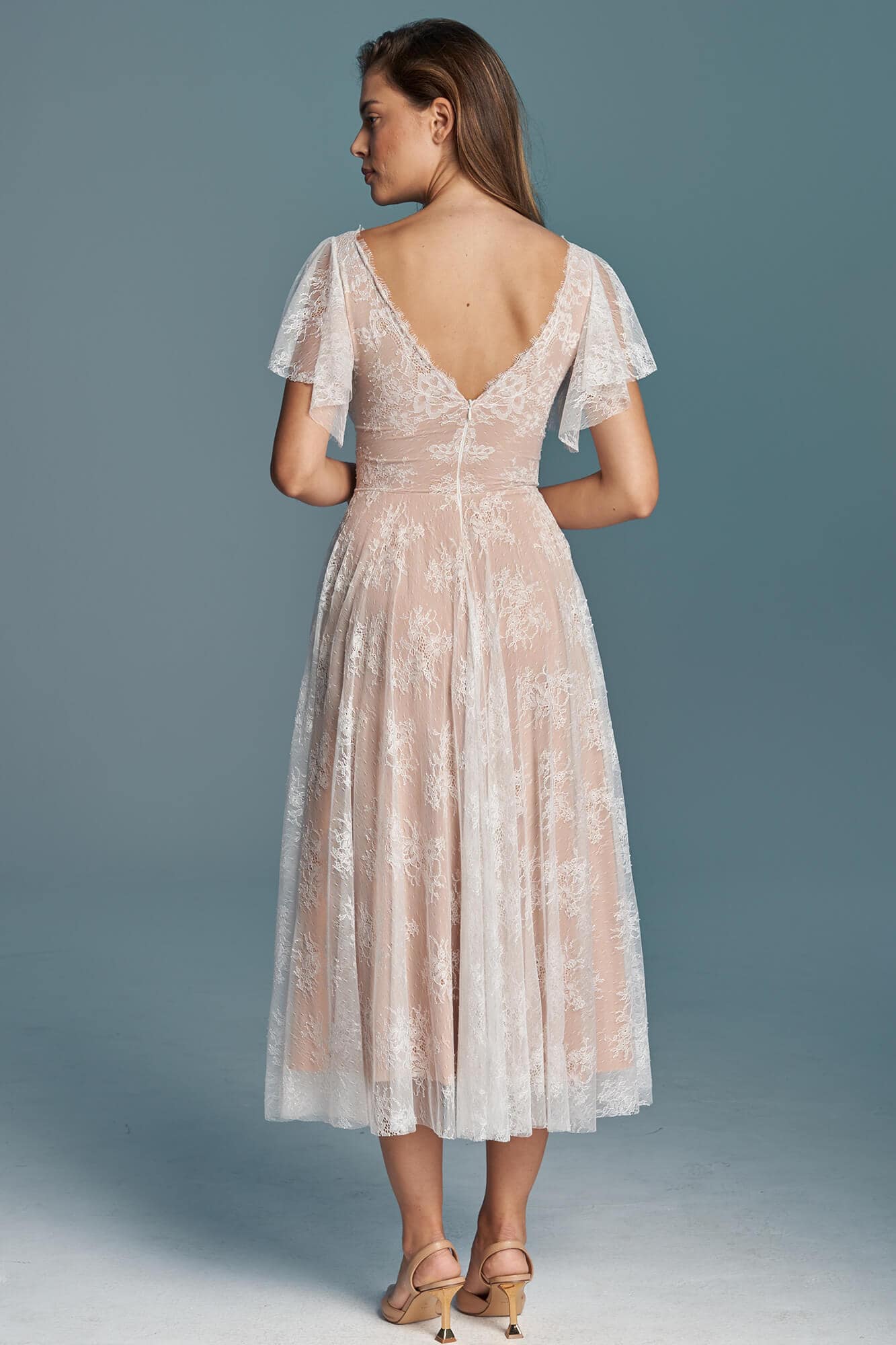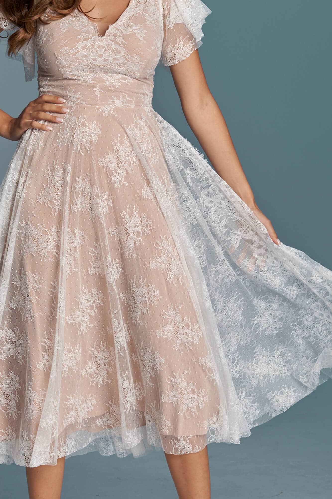 Ta suknia to model wyjściowy - możemy w niej zmienić praktycznie wszystko! Pogłębić lub spłycić dekolt, zmienić jego wykończenie, kształt, dodać lub odjąć falbankę czy frędzle. Rękawy mogą być dłuższe lub krótsze, mieć inny kształt niż te na zdjęciu. Może też nie być ich wcale. Tiul w spódnicy można dodać (lub odjąć) na wierzchu, albo pod spodem. Podszewka może być długa lub krótka w odcieniach bieli i beżu. Rozcięcie na nogę i tren można dodać lub usunąć praktycznie w każdym modelu.