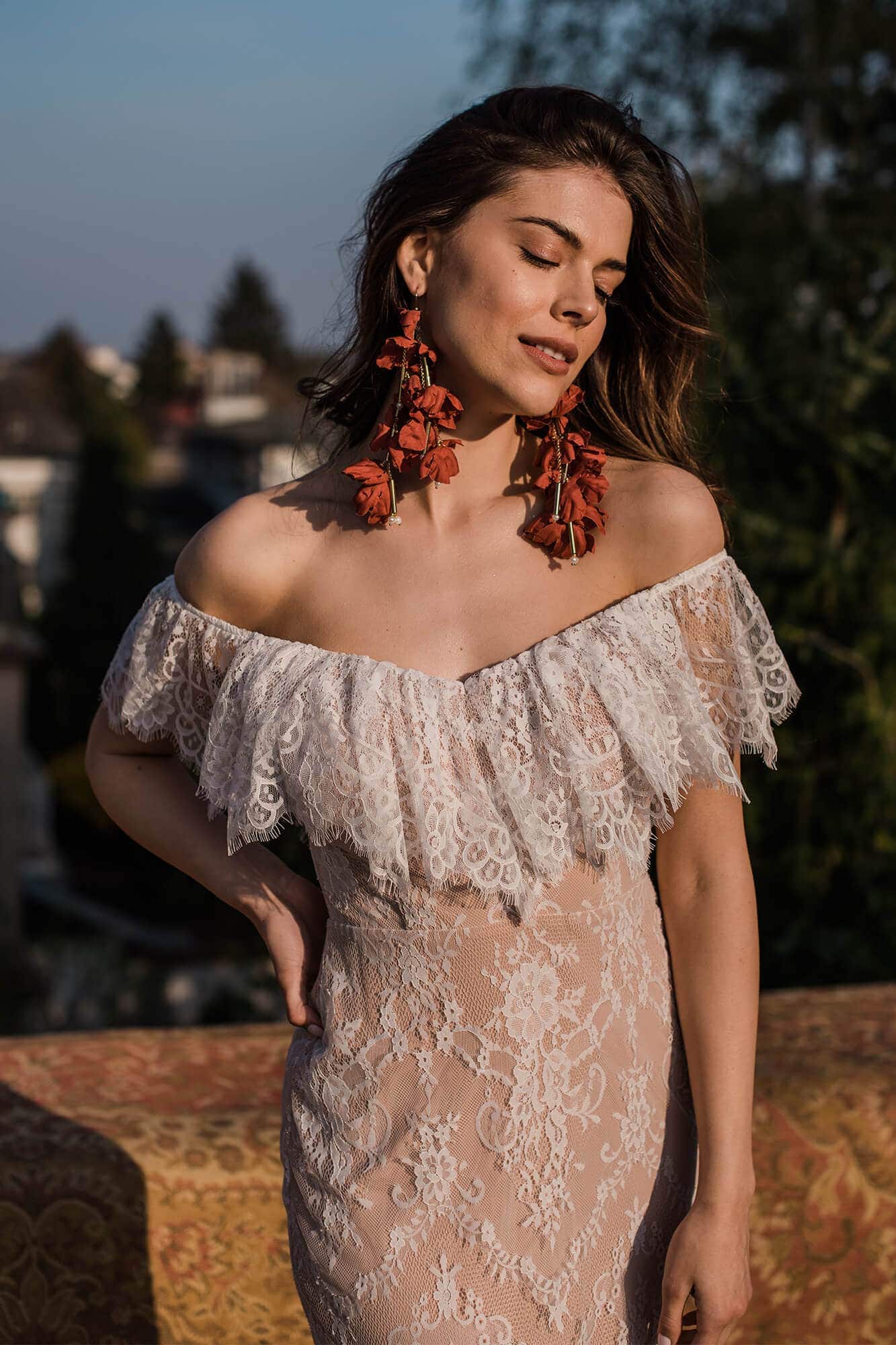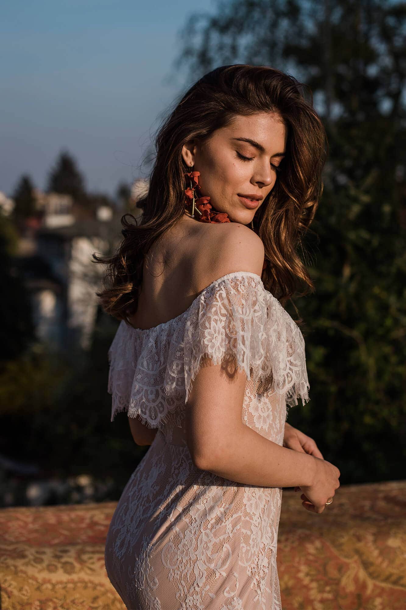 Uszyta ze sprawdzonych i przetestowanych przez nas materiałów. Używane przez nas koronki są mięciutkie, a dzięki swej lekkości cudownie układają się na sylwetce i pięknie wirują w tańcu. Ich elastyczność sprawia, że pracują z Twoim ciałem. Zapewniają komfort rosnącemu ciążowemu brzuszkowi. Praktycznie wszystkie nasze koronki są łatwe do prania w domowej pralce i niegniotące, dzięki czemu swoją suknię spokojnie możesz spakować do walizki i zabrać na romantyczną sesję poślubną.