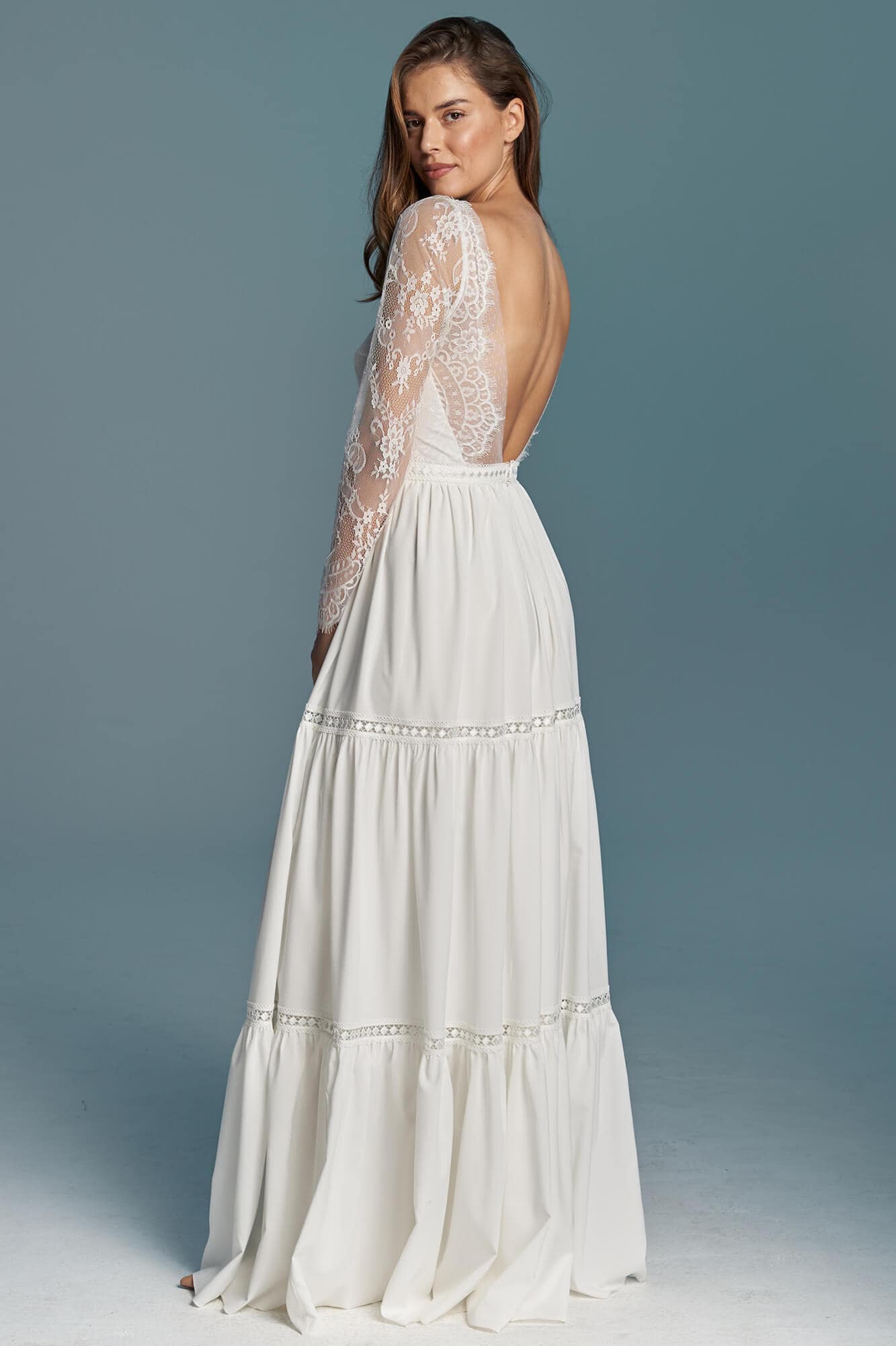 Twoja suknia zostanie uszyta z niesamowicie miękkiego, lekkiego i lejącego szyfonu, który będzie się poruszał nawet przy lekkim ruchu powietrza. Jeśli marzysz o klasycznej sukni ślubnej, ale przeraża Cię jej ciężar lub niewygodny gorset to jest to idealne rozwiązanie dla Ciebie! Ta suknia jest tak lekka, że możesz zapomnieć ją założyć! A podszewka tak elastyczna, że nie będziesz chciała jej zdjąć! Diabeł tkwi w szczegółach - zobacz subtelne wykończenia.