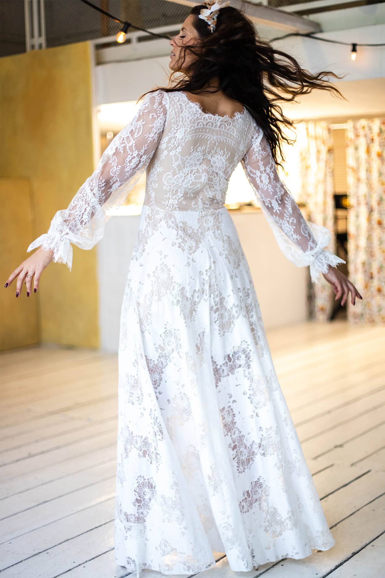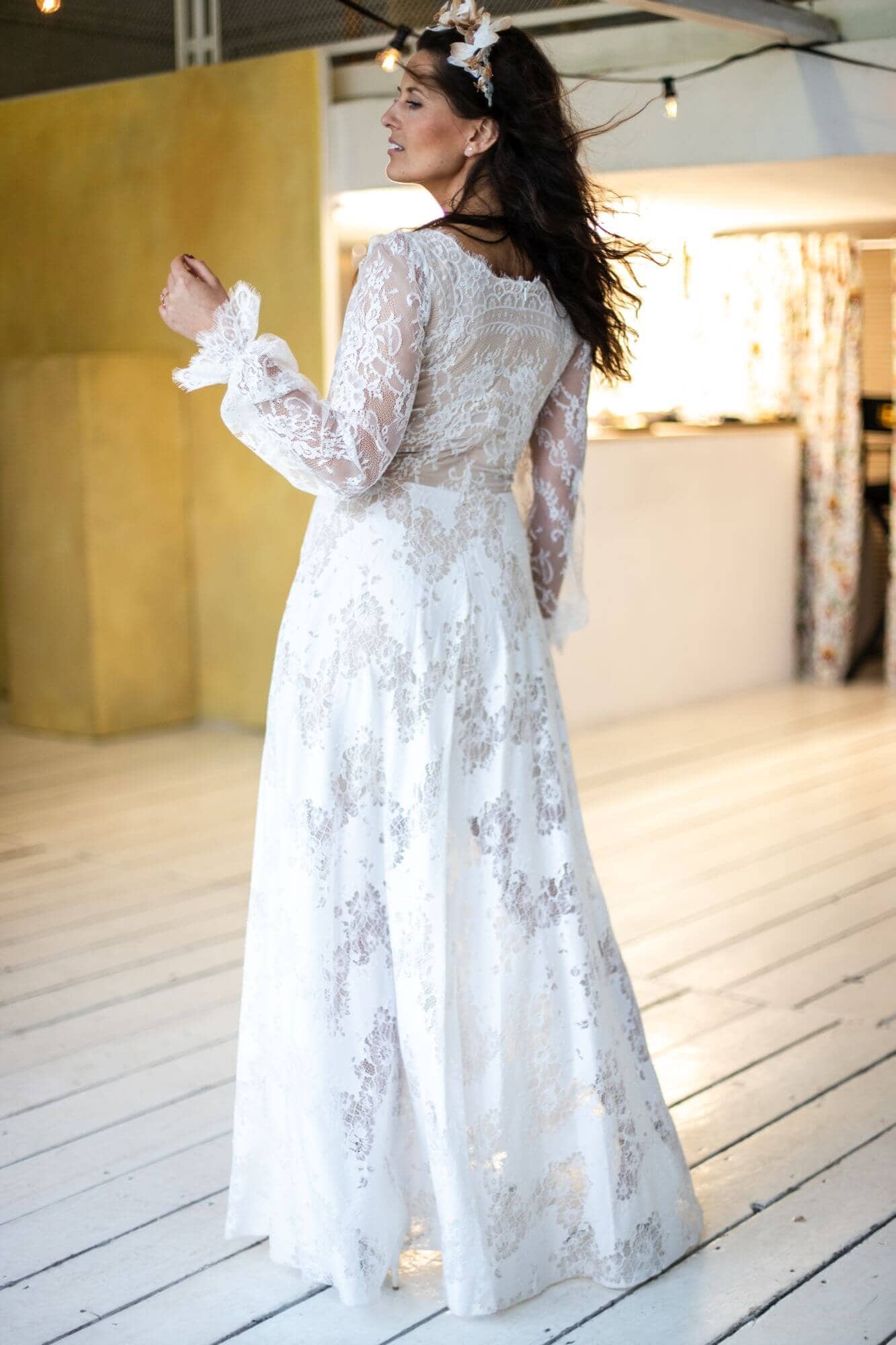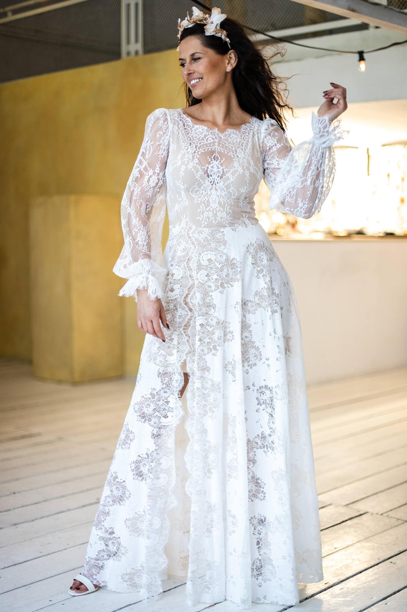 Uszyta ze sprawdzonych i przetestowanych przez nas materiałów. Używane przez nas koronki są mięciutkie, a dzięki swej lekkości cudownie układają się na sylwetce i pięknie wirują w tańcu. Ich elastyczność sprawia, że pracują z Twoim ciałem. Zapewniają komfort rosnącemu ciążowemu brzuszkowi. Praktycznie wszystkie nasze koronki są łatwe do prania w domowej pralce i niegniotące, dzięki czemu swoją suknię spokojnie możesz spakować do walizki i zabrać na romantyczną sesję poślubną.
