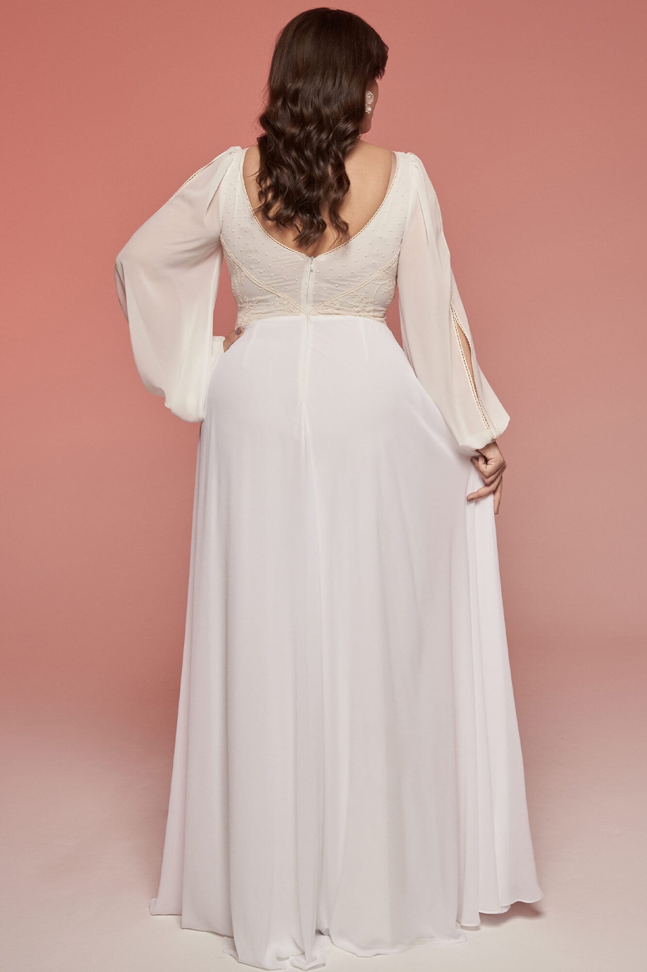 Twoja suknia zostanie uszyta z niesamowicie miękkiego, lekkiego i lejącego szyfonu, który będzie się poruszał nawet przy lekkim ruchu powietrza. Jeśli marzysz o klasycznej sukni ślubnej, ale przeraża Cię jej ciężar lub niewygodny gorset to jest to idealne rozwiązanie dla Ciebie! Ta suknia jest tak lekka, że możesz zapomnieć ją założyć! A podszewka tak elastyczna, że nie będziesz chciała jej zdjąć! Diabeł tkwi w szczegółach - zobacz subtelne wykończenia.