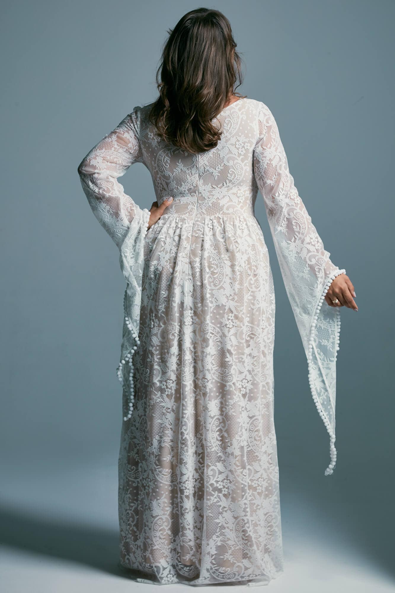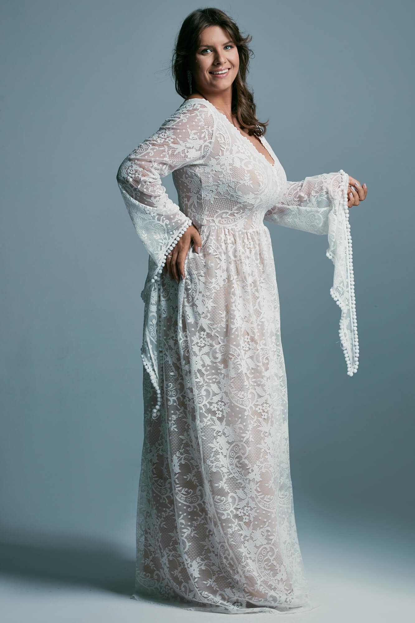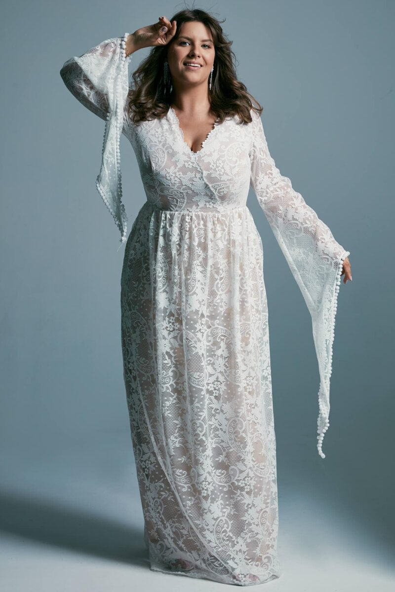 Uszyta ze sprawdzonych i przetestowanych przez nas materiałów. Używane przez nas koronki są mięciutkie, a dzięki swej lekkości cudownie układają się na sylwetce i pięknie wirują w tańcu. Ich elastyczność sprawia, że pracują z Twoim ciałem. Zapewniają komfort rosnącemu ciążowemu brzuszkowi. Praktycznie wszystkie nasze koronki są łatwe do prania w domowej pralce i niegniotące, dzięki czemu swoją suknię spokojnie możesz spakować do walizki i zabrać na romantyczną sesję poślubną.