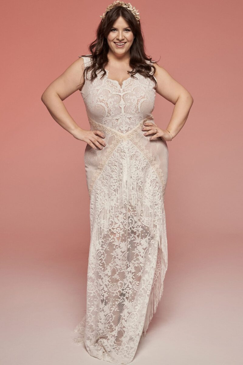 Uszyta ze sprawdzonych i przetestowanych przez nas materiałów. Używane przez nas koronki są mięciutkie, a dzięki swej lekkości cudownie układają się na sylwetce i pięknie wirują w tańcu. Ich elastyczność sprawia, że pracują z Twoim ciałem. Zapewniają komfort rosnącemu ciążowemu brzuszkowi. Praktycznie wszystkie nasze koronki są łatwe do prania w domowej pralce i niegniotące, dzięki czemu swoją suknię spokojnie możesz spakować do walizki i zabrać na romantyczną sesję poślubną.