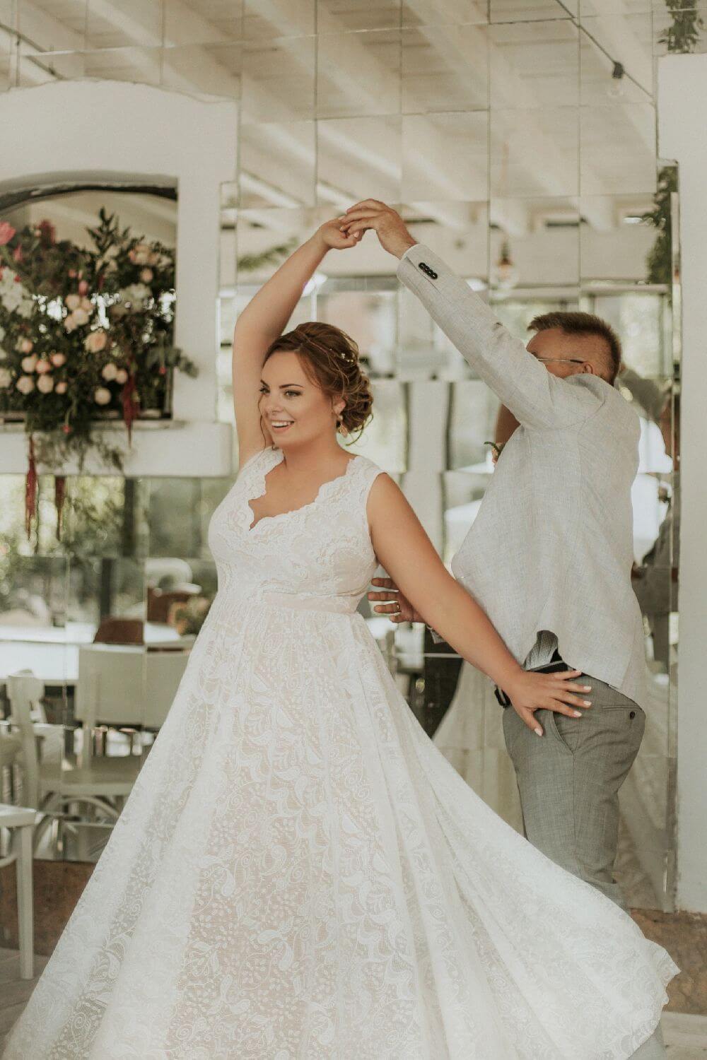 Twoją wymarzoną suknię uszyjemy w jeden dzień – rano mierzymy i dobieramy fason, kolor i wykończenia, po południu masz krótką przymiarkę techniczną (łączymy na Tobie elementy), a na koniec skracamy suknię i odbierasz gotową kreację tego samego dnia! Dla nas każda sylwetka jest „łatwa” – czy jesteś wysoka, czy niska, drobna czy masz pełne kształty, masz obfity biust czy ledwie widoczny, asymetrię ciała czy niepełnosprawności – uszyjemy suknię na Twoją figurę i na Twoją miarę!