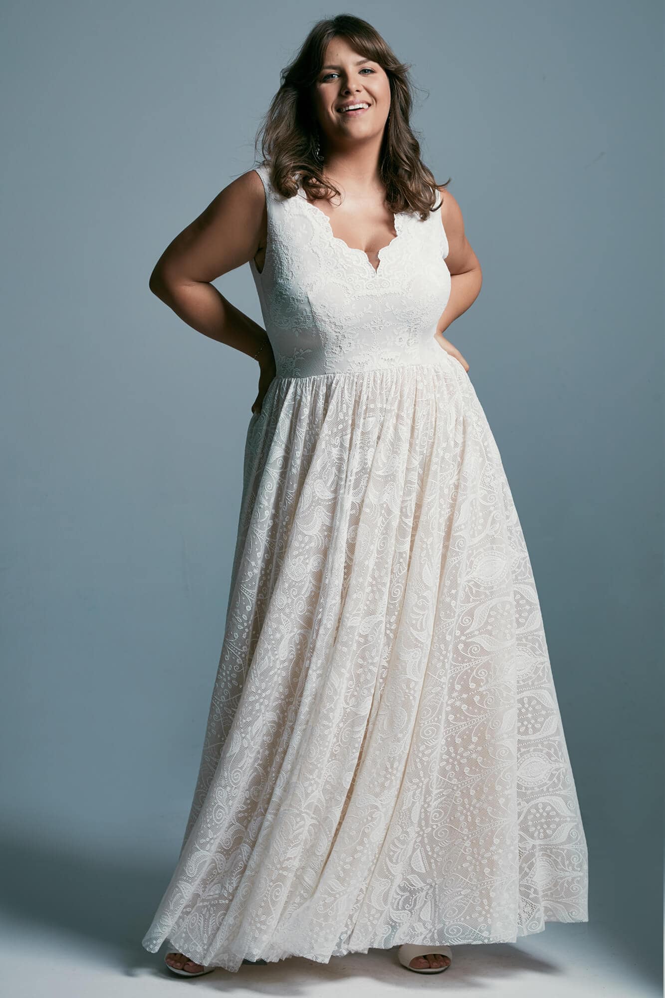 Uszyta ze sprawdzonych i przetestowanych przez nas materiałów. Używane przez nas koronki są mięciutkie, a dzięki swej lekkości cudownie układają się na sylwetce i pięknie wirują w tańcu. Ich elastyczność sprawia, że pracują z Twoim ciałem. Zapewniają komfort rosnącemu ciążowemu brzuszkowi. Praktycznie wszystkie nasze koronki są łatwe do prania w domowej pralce i niegniotące, dzięki czemu swoją suknię spokojnie możesz spakować do walizki i zabrać na romantyczną sesję poślubną.