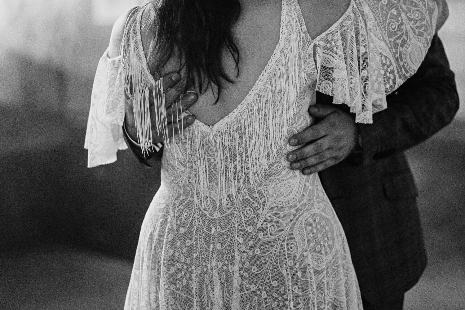 Uszyta ze sprawdzonych i przetestowanych przez nas materiałów. Używane przez nas koronki są mięciutkie, a dzięki swej lekkości cudownie układają się na sylwetce i pięknie wirują w tańcu. Ich elastyczność sprawia, że pracują z Twoim ciałem. Zapewniają komfort rosnącemu ciążowemu brzuszkowi. Praktycznie wszystkie nasze koronki są łatwe do prania w domowej pralce i niegniotące, dzięki czemu swoją suknię spokojnie możesz spakować do walizki i zabrać na romantyczną sesję poślubną.