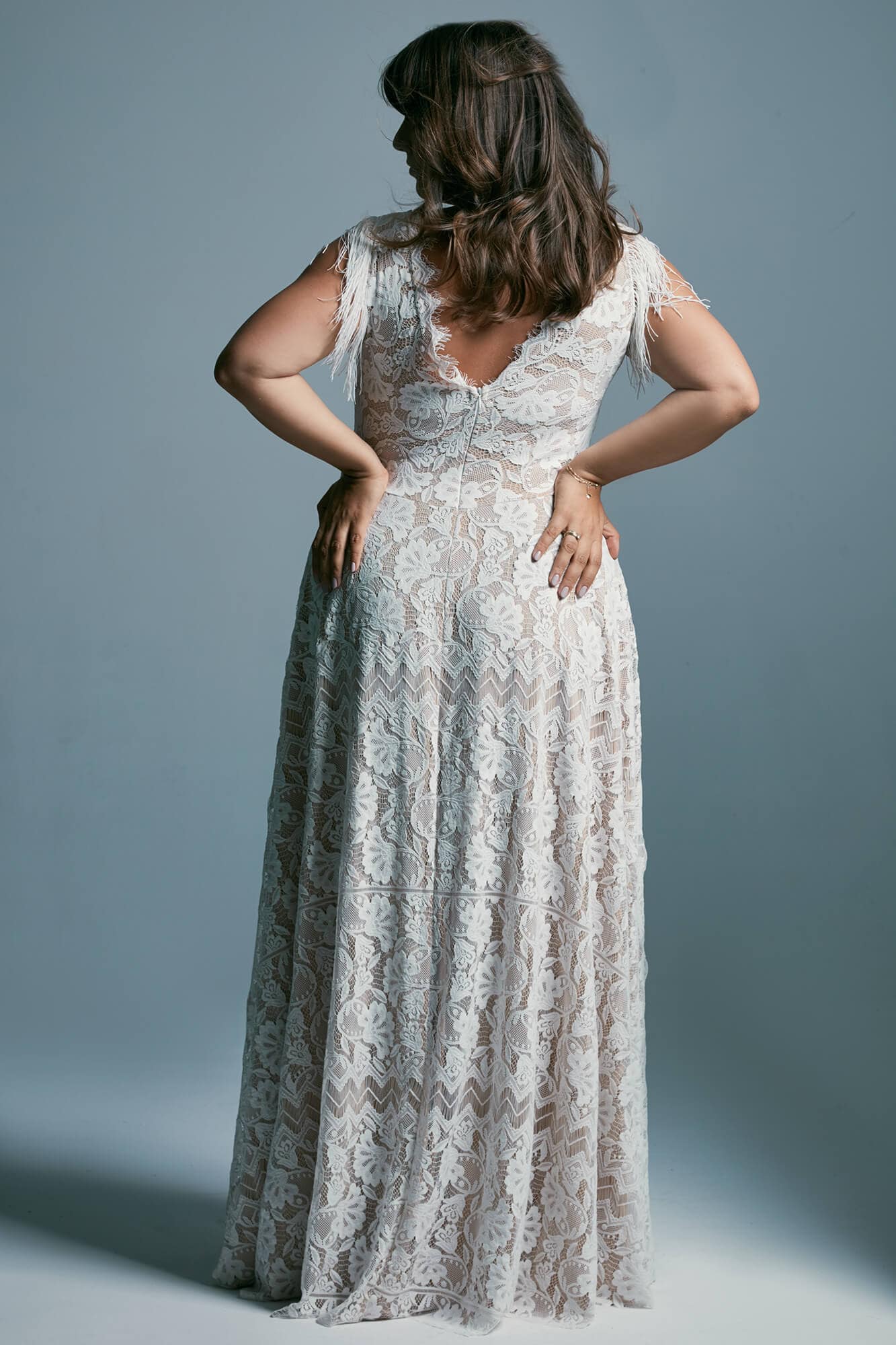 Uszyta ze sprawdzonych i przetestowanych przez nas materiałów. Używane przez nas koronki są mięciutkie, a dzięki swej lekkości cudownie układają się na sylwetce i pięknie wirują w tańcu. Ich elastyczność sprawia, że pracują z Twoim ciałem. Zapewniają komfort rosnącemu ciążowemu brzuszkowi. Praktycznie wszystkie nasze koronki są łatwe do prania w domowej pralce i niegniotące, dzięki czemu swoją suknię spokojnie możesz spakować do walizki i zabrać na romantyczną sesję poślubną.