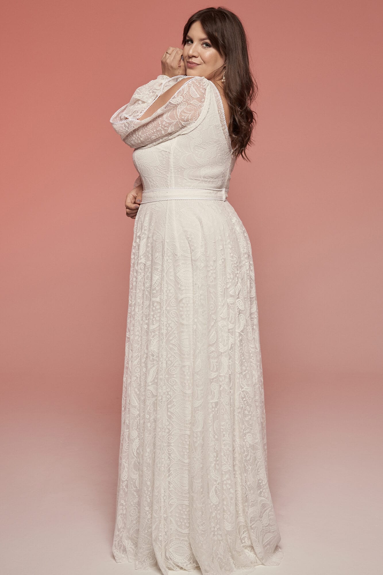 Uszyta ze sprawdzonych i przetestowanych przez nas materiałów. Używane przez nas koronki są mięciutkie, a dzięki swej lekkości cudownie układają się na sylwetce i pięknie wirują w tańcu. Ich elastyczność sprawia, że pracują z Twoim ciałem. Zapewniają komfort rosnącemu ciążowemu brzuszkowi. Praktycznie wszystkie nasze koronki są łatwe do prania w domowej pralce i niegniotące, dzięki czemu swoją suknię spokojnie możesz spakować do walizki i zabrać na romantyczną sesję poślubną.