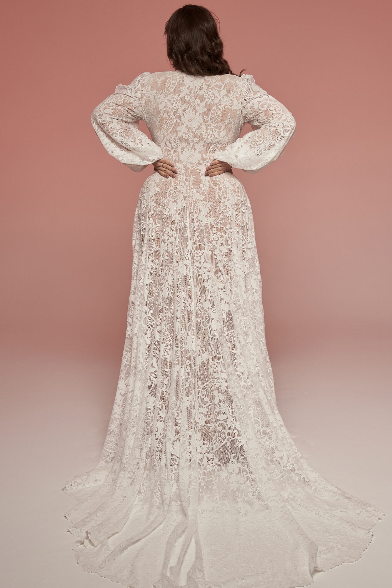 Ta suknia to model wyjściowy - możemy w niej zmienić praktycznie wszystko! Pogłębić lub spłycić dekolt, zmienić jego wykończenie, kształt, dodać lub odjąć falbankę czy frędzle. Rękawy mogą być dłuższe lub krótsze, mieć inny kształt niż te na zdjęciu. Może też nie być ich wcale. Tiul w spódnicy można dodać (lub odjąć) na wierzchu, albo pod spodem. Podszewka może być długa lub krótka w odcieniach bieli i beżu. Rozcięcie na nogę i tren można dodać lub usunąć praktycznie w każdym modelu.