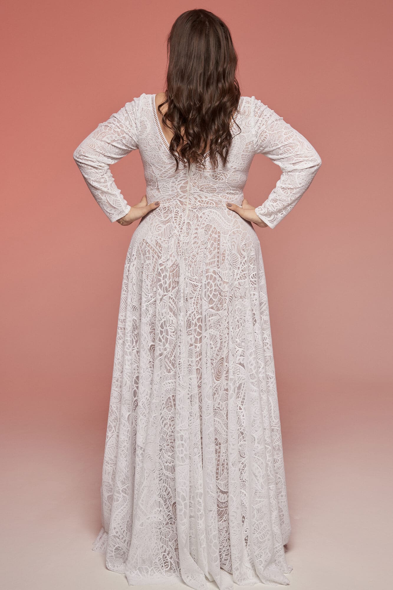 Uszyta ze sprawdzonych i przetestowanych przez nas materiałów. Używane przez nas koronki są mięciutkie, a dzięki swej lekkości cudownie układają się na sylwetce i pięknie wirują w tańcu. Ich elastyczność sprawia, że pracują z Twoim ciałem. Zapewniają komfort rosnącemu ciążowemu brzuszkowi. Praktycznie wszystkie nasze koronki są łatwe do prania w domowej pralce i niegniotące, dzięki czemu swoją suknię spokojnie możesz spakować do walizki i zabrać na romantyczną sesję poślubną.