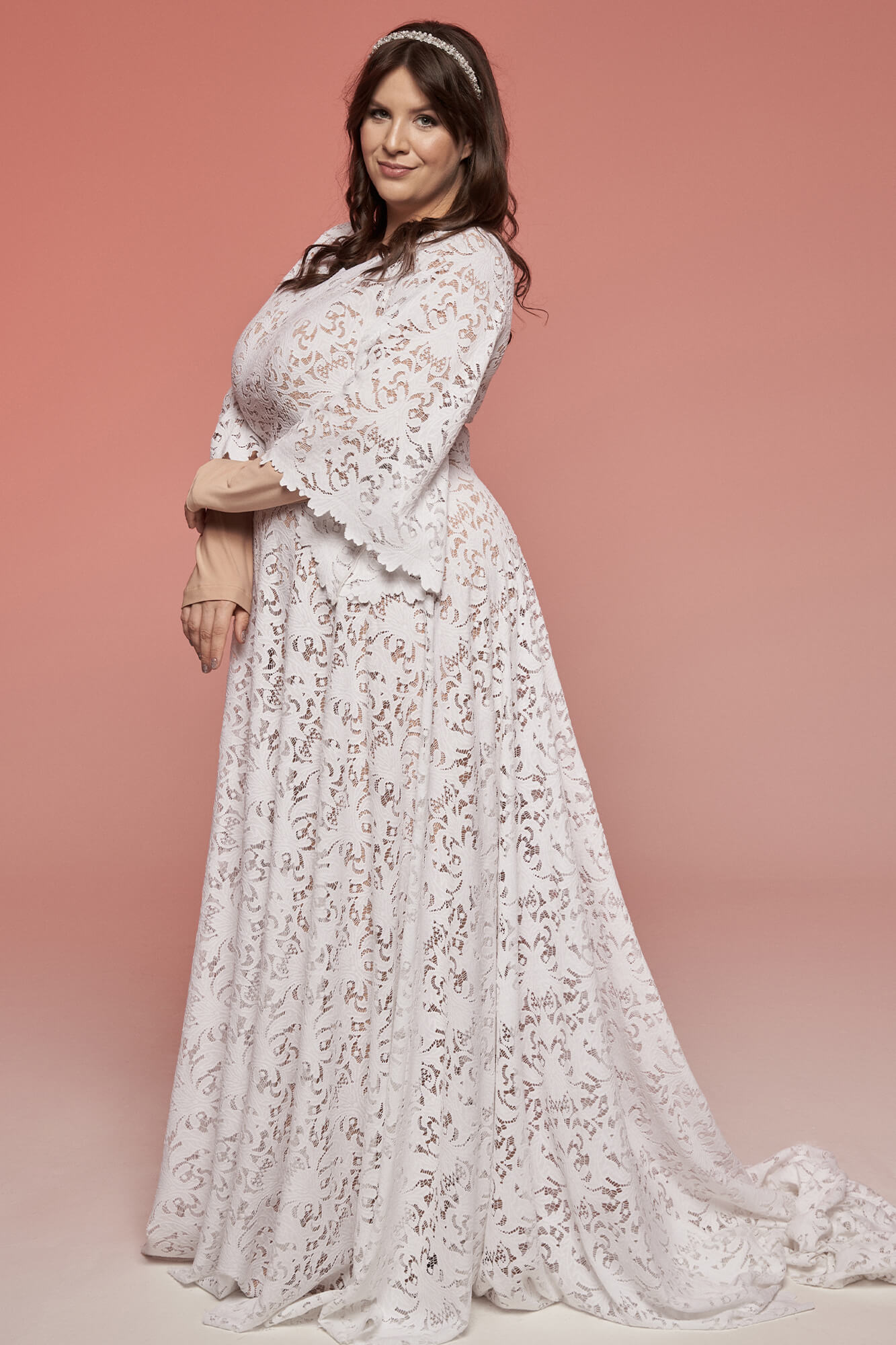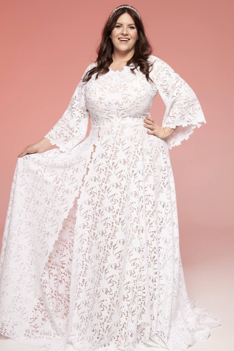 Uszyta ze sprawdzonych i przetestowanych przez nas materiałów. Używane przez nas koronki są mięciutkie, a dzięki swej lekkości cudownie układają się na sylwetce i pięknie wirują w tańcu. Ich elastyczność sprawia, że pracują z Twoim ciałem. Zapewniają komfort rosnącemu ciążowemu brzuszkowi. Praktycznie wszystkie nasze koronki są łatwe do prania w domowej pralce i niegniotące, dzięki czemu swoją suknię spokojnie możesz spakować do walizki i zabrać na romantyczną sesję poślubną.