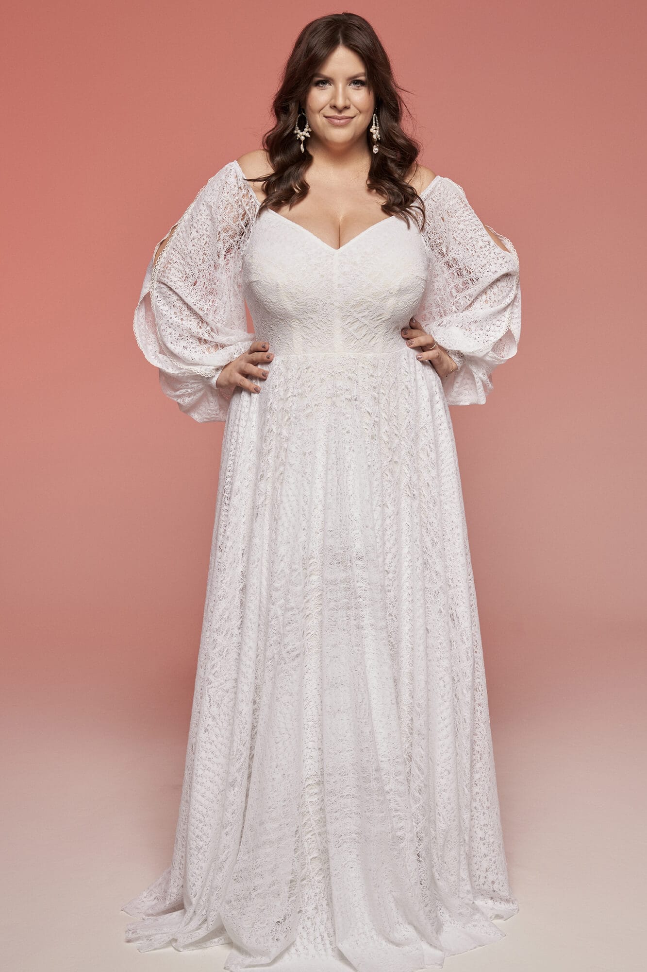 Ta suknia to model wyjściowy - możemy w niej zmienić praktycznie wszystko! Pogłębić lub spłycić dekolt, zmienić jego wykończenie, kształt, dodać lub odjąć falbankę czy frędzle. Rękawy mogą być dłuższe lub krótsze, mieć inny kształt niż te na zdjęciu. Może też nie być ich wcale. Tiul w spódnicy można dodać (lub odjąć) na wierzchu, albo pod spodem. Podszewka może być długa lub krótka w odcieniach bieli i beżu. Rozcięcie na nogę i tren można dodać lub usunąć praktycznie w każdym modelu.