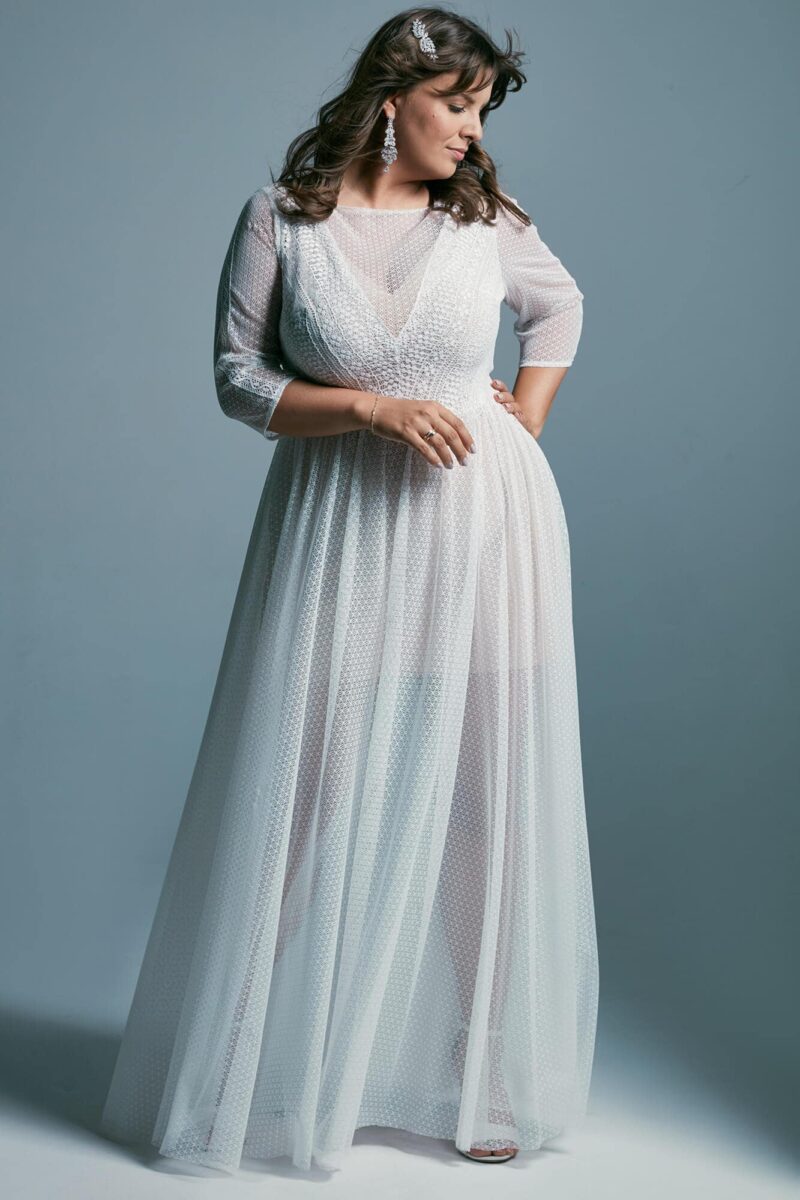 Uszyta ze sprawdzonych i przetestowanych przez nas materiałów. Używane przez nas koronki są mięciutkie, a dzięki swej lekkości cudownie układają się na sylwetce i pięknie wirują w tańcu. Ich elastyczność sprawia, że pracują z Twoim ciałem. Zapewniają komfort rosnącemu ciążowemu brzuszkowi. Praktycznie wszystkie nasze koronki są łatwe do prania w domowej pralce i niegniotące, dzięki czemu swoją suknię spokojnie możesz spakować do walizki i zabrać na romantyczną sesję poślubną.