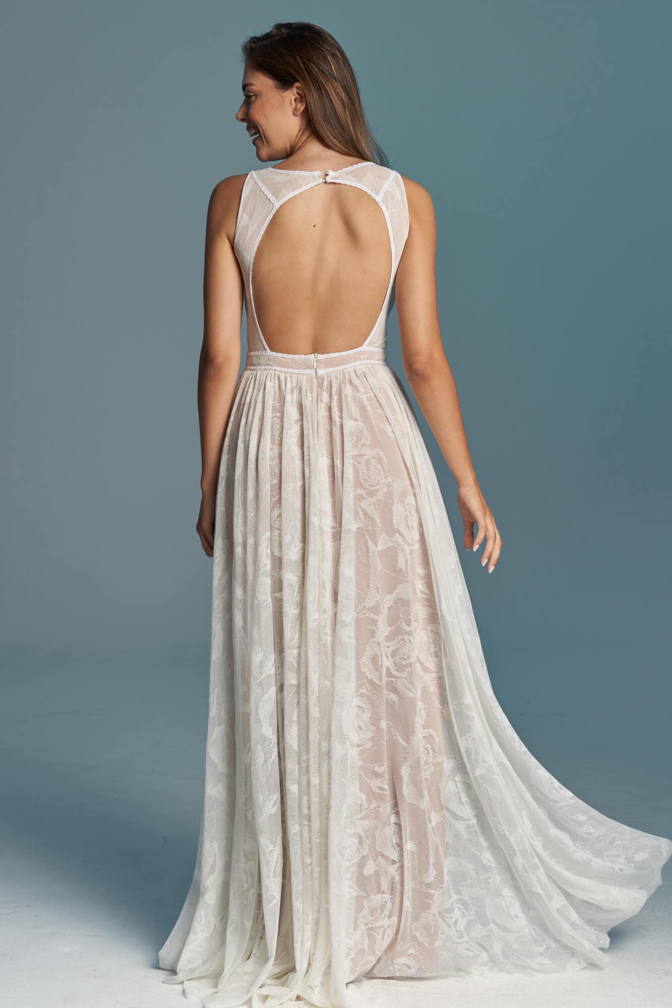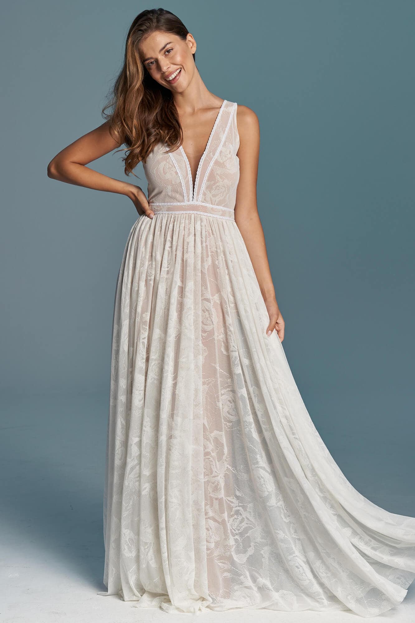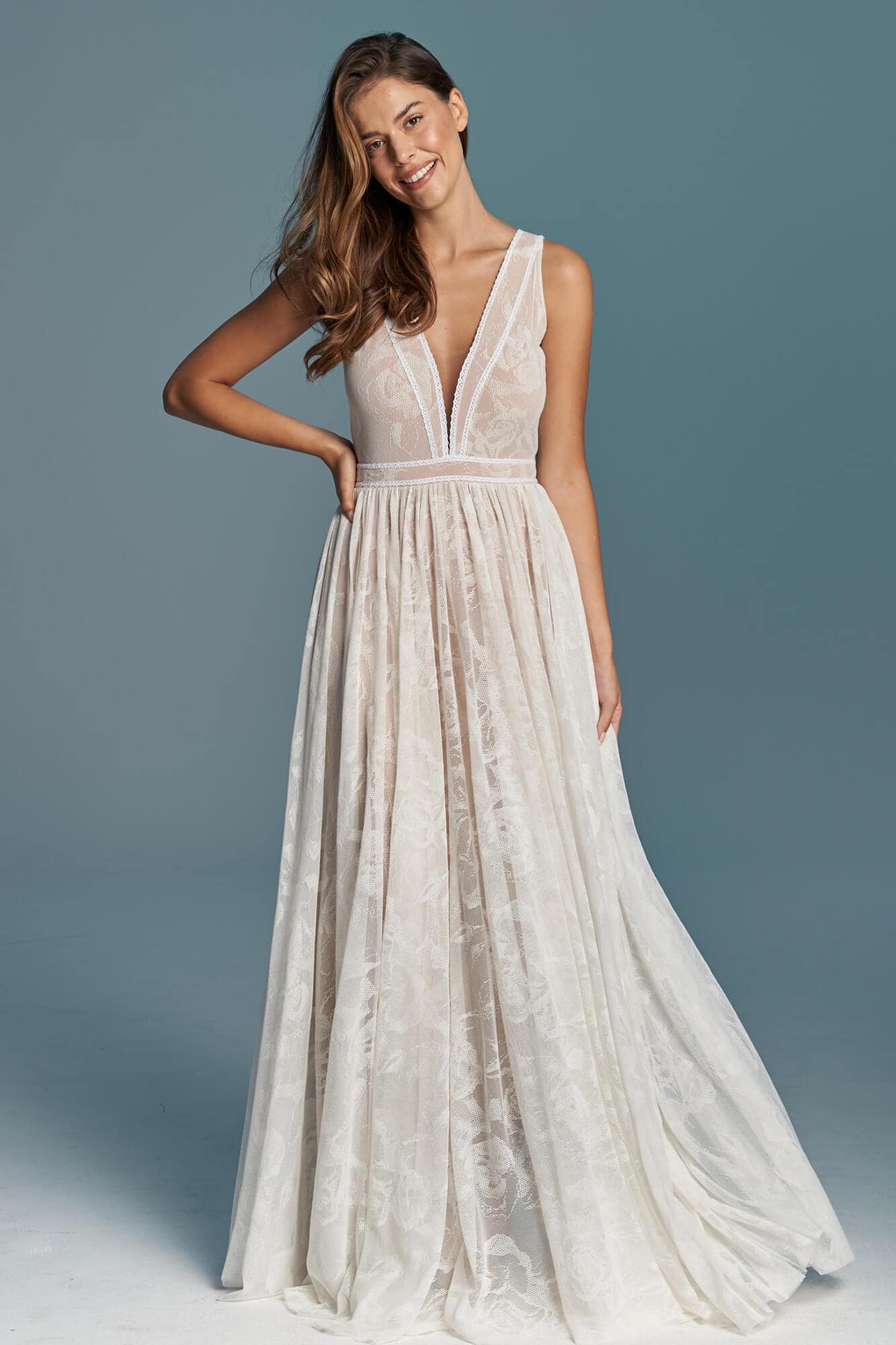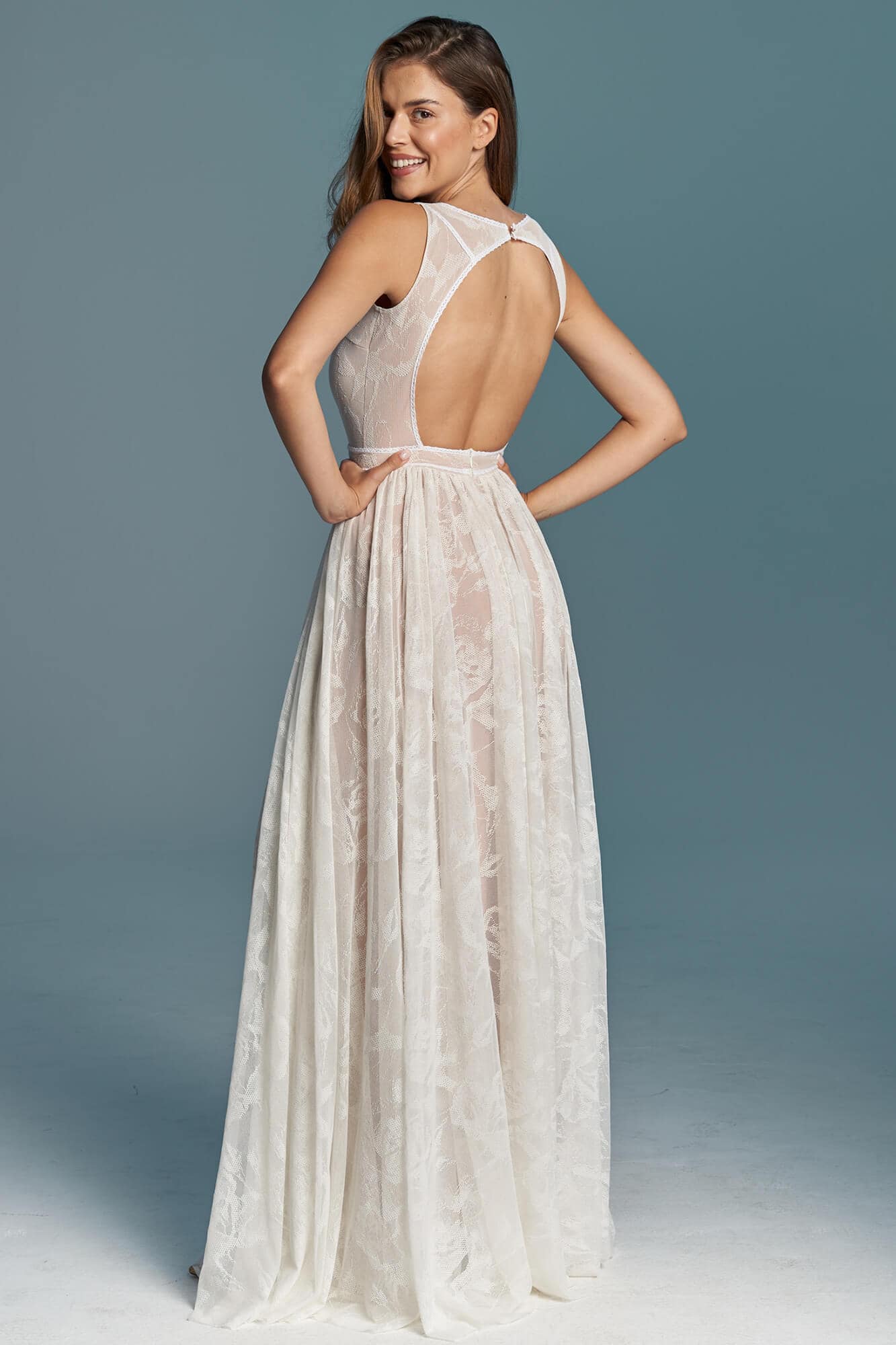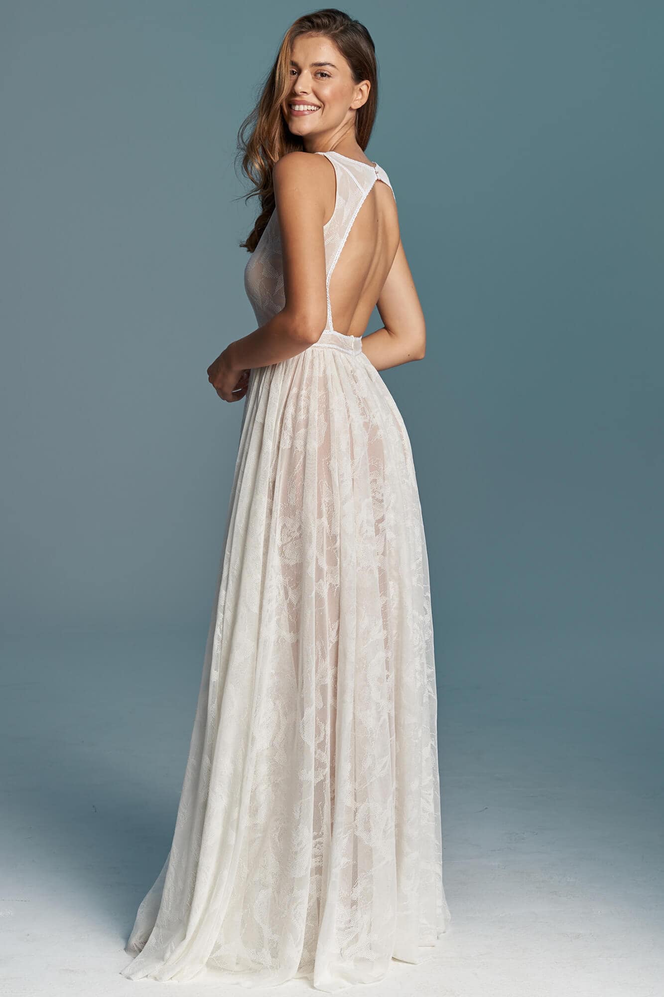 Uszyta ze sprawdzonych i przetestowanych przez nas materiałów. Używane przez nas koronki są mięciutkie, a dzięki swej lekkości cudownie układają się na sylwetce i pięknie wirują w tańcu. Ich elastyczność sprawia, że pracują z Twoim ciałem. Zapewniają komfort rosnącemu ciążowemu brzuszkowi. Praktycznie wszystkie nasze koronki są łatwe do prania w domowej pralce i niegniotące, dzięki czemu swoją suknię spokojnie możesz spakować do walizki i zabrać na romantyczną sesję poślubną.