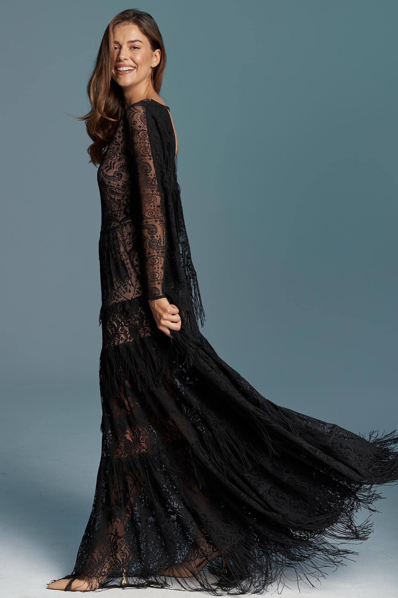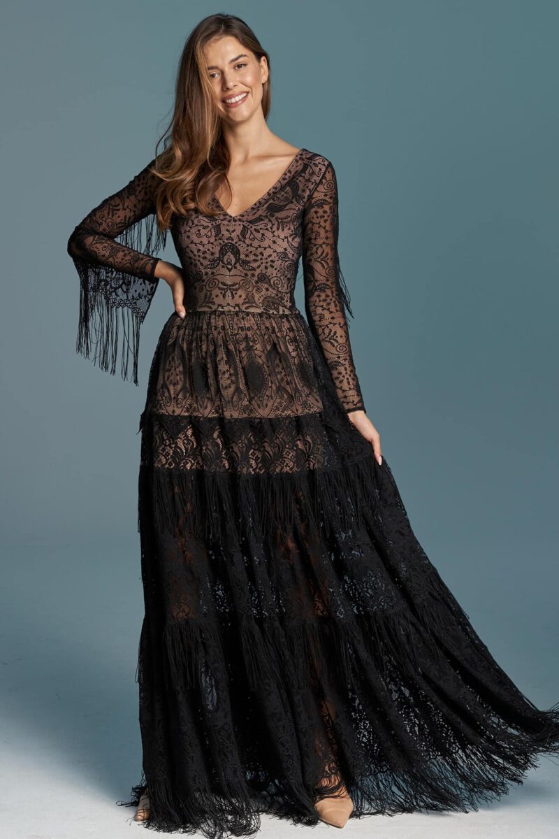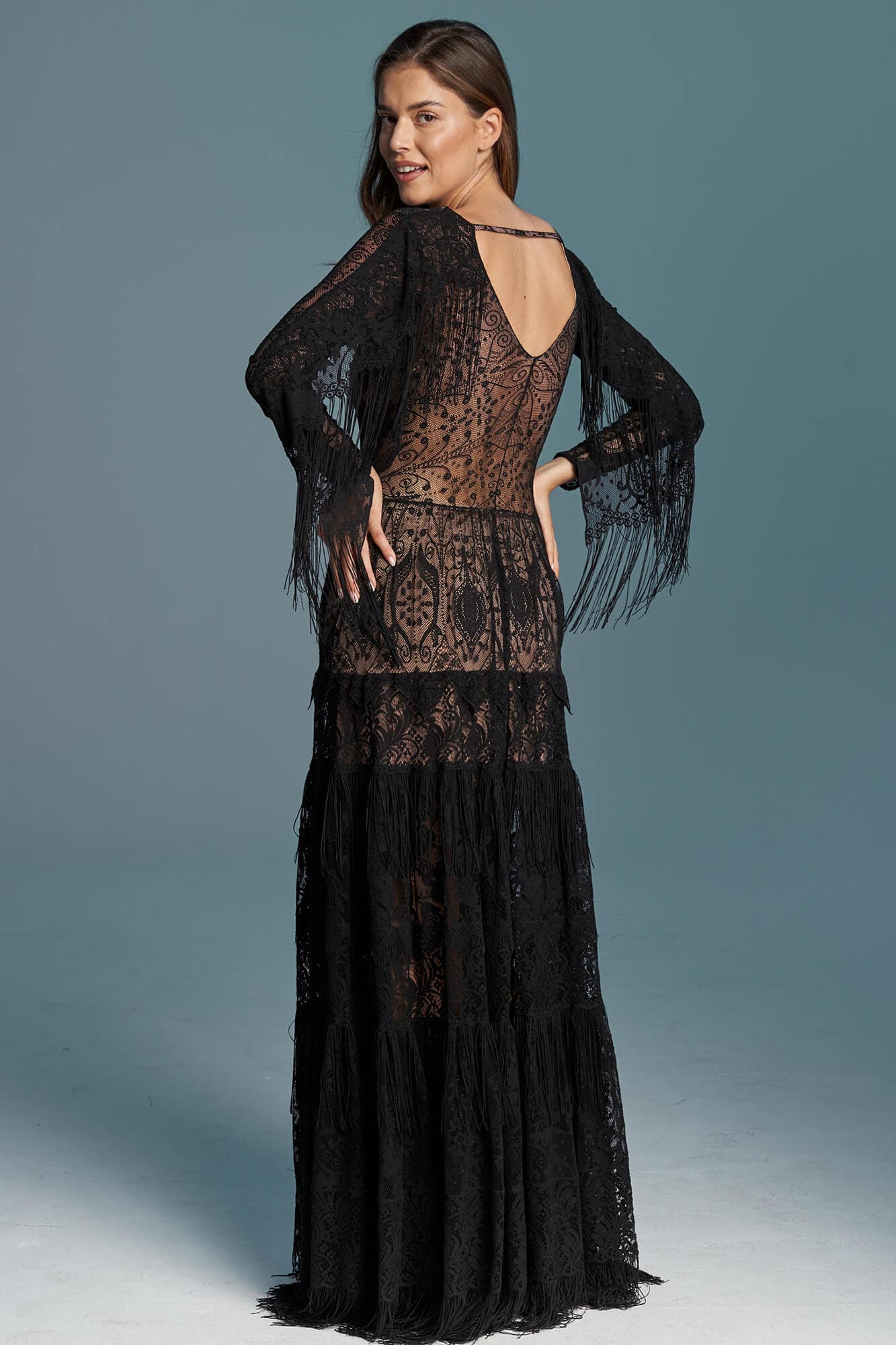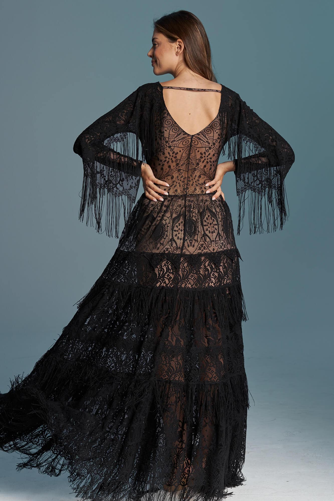 Ta suknia to model wyjściowy - możemy w niej zmienić praktycznie wszystko! Pogłębić lub spłycić dekolt, zmienić jego wykończenie, kształt, dodać lub odjąć falbankę czy frędzle. Rękawy mogą być dłuższe lub krótsze, mieć inny kształt niż te na zdjęciu. Może też nie być ich wcale. Tiul w spódnicy można dodać (lub odjąć) na wierzchu, albo pod spodem. Podszewka może być długa lub krótka w odcieniach bieli i beżu. Rozcięcie na nogę i tren można dodać lub usunąć praktycznie w każdym modelu.