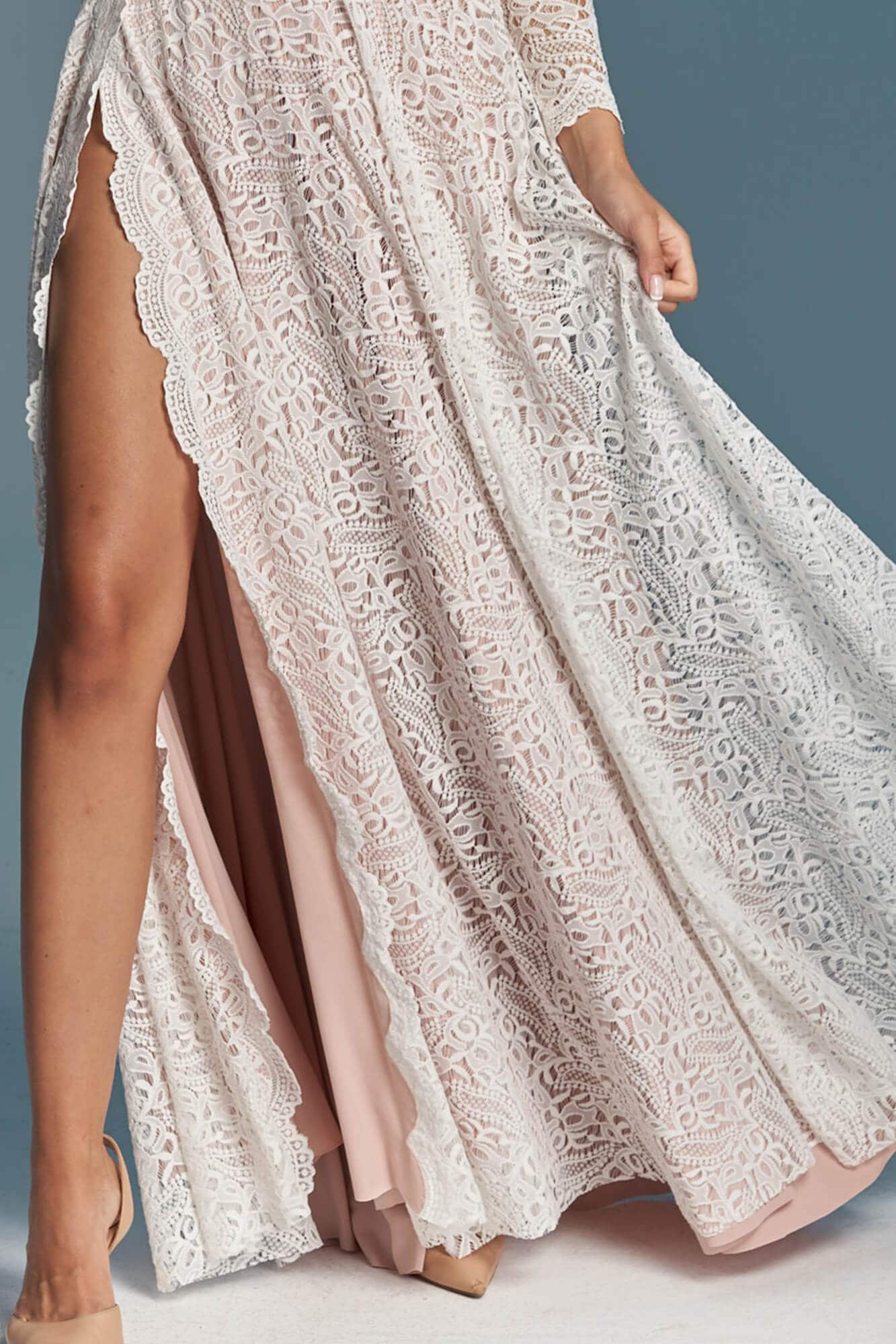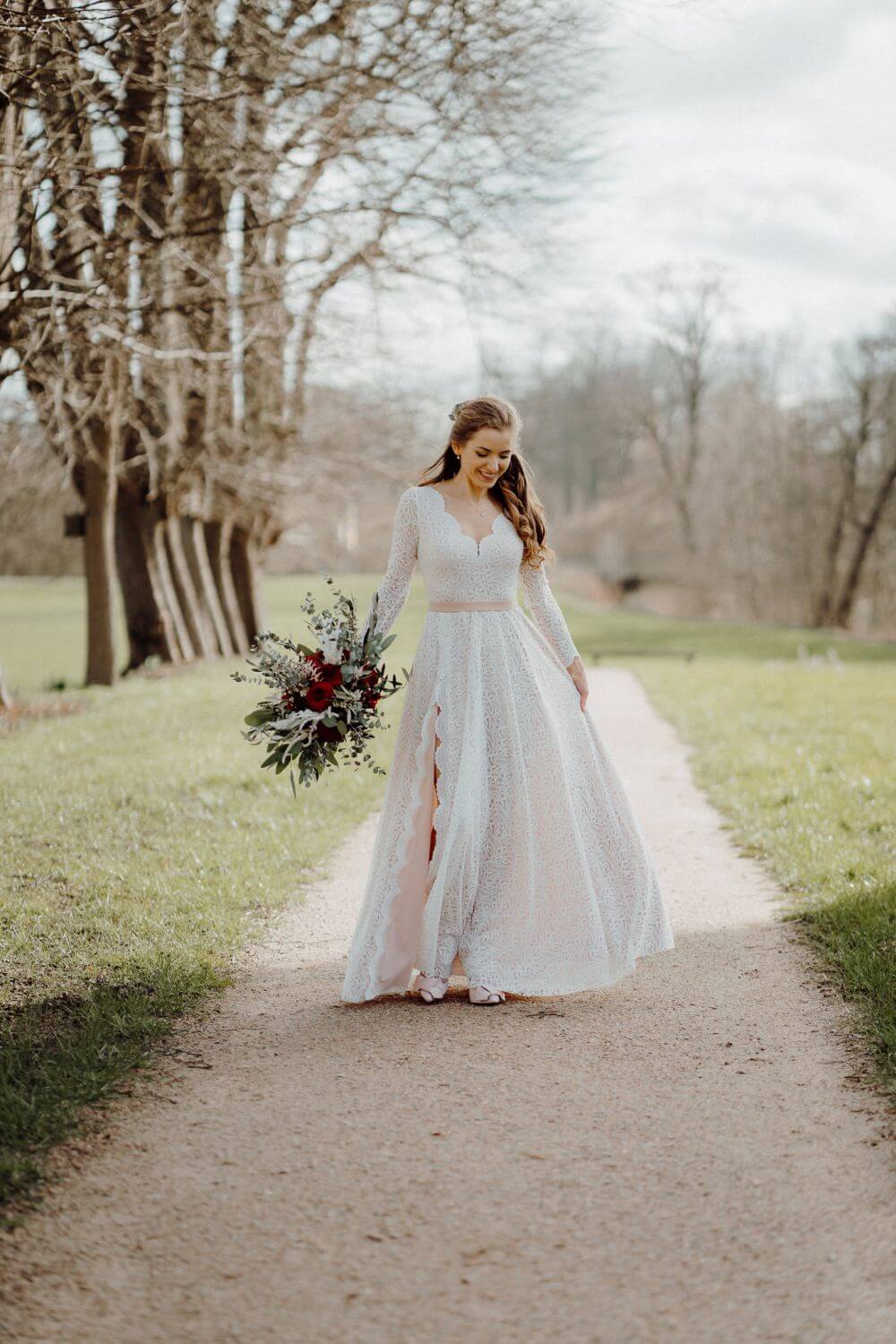 Uszyta ze sprawdzonych i przetestowanych przez nas materiałów. Używane przez nas koronki są mięciutkie, a dzięki swej lekkości cudownie układają się na sylwetce i pięknie wirują w tańcu. Ich elastyczność sprawia, że pracują z Twoim ciałem. Zapewniają komfort rosnącemu ciążowemu brzuszkowi. Praktycznie wszystkie nasze koronki są łatwe do prania w domowej pralce i niegniotące, dzięki czemu swoją suknię spokojnie możesz spakować do walizki i zabrać na romantyczną sesję poślubną.