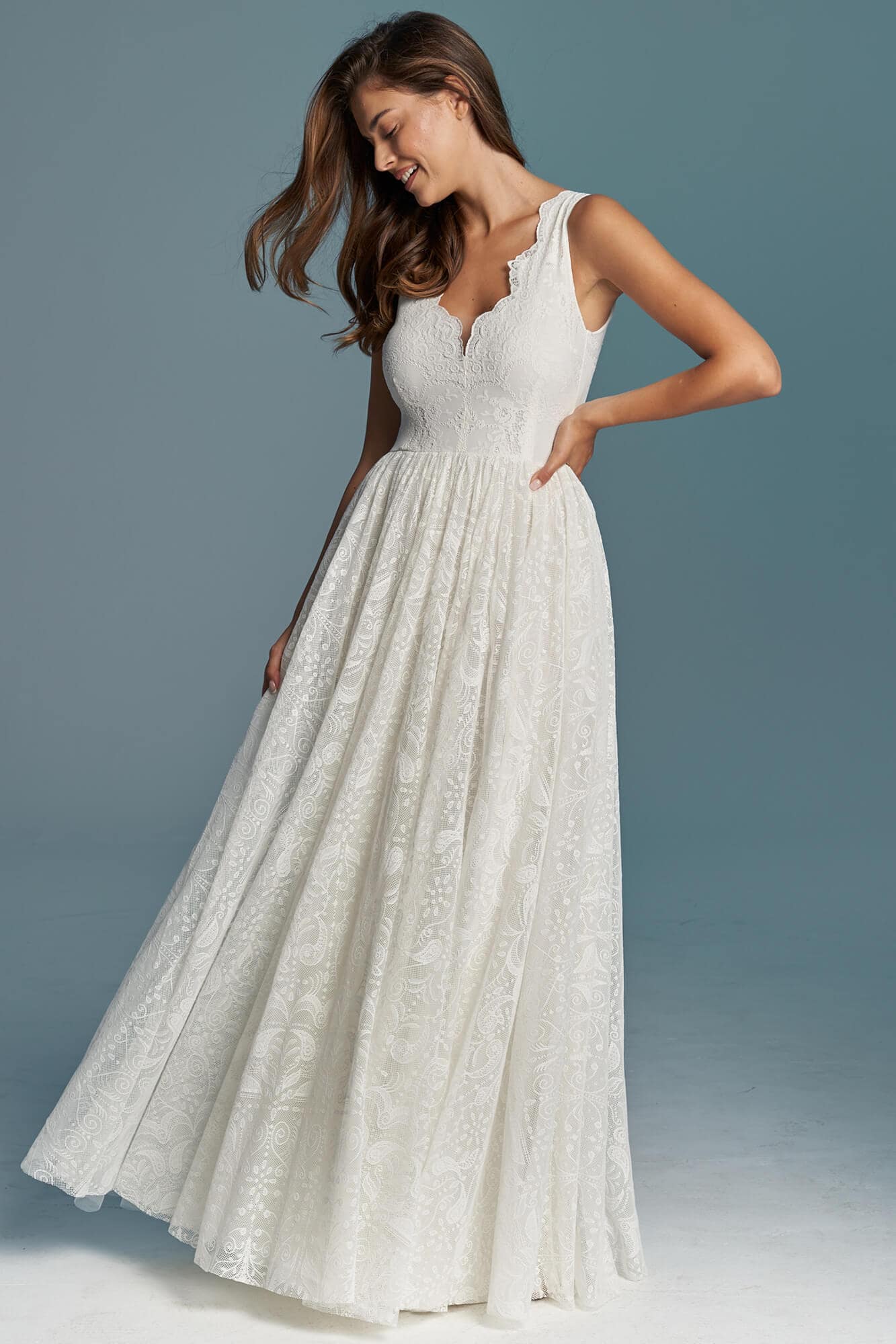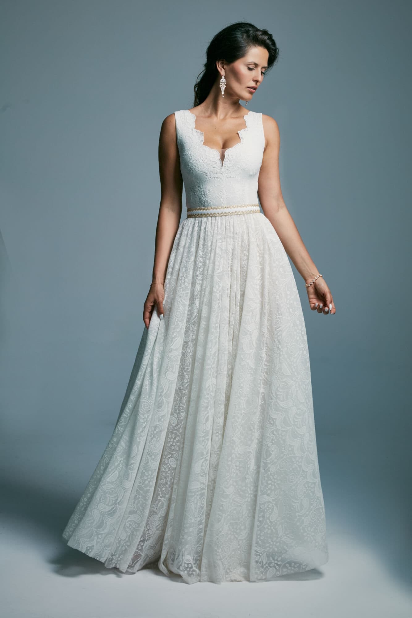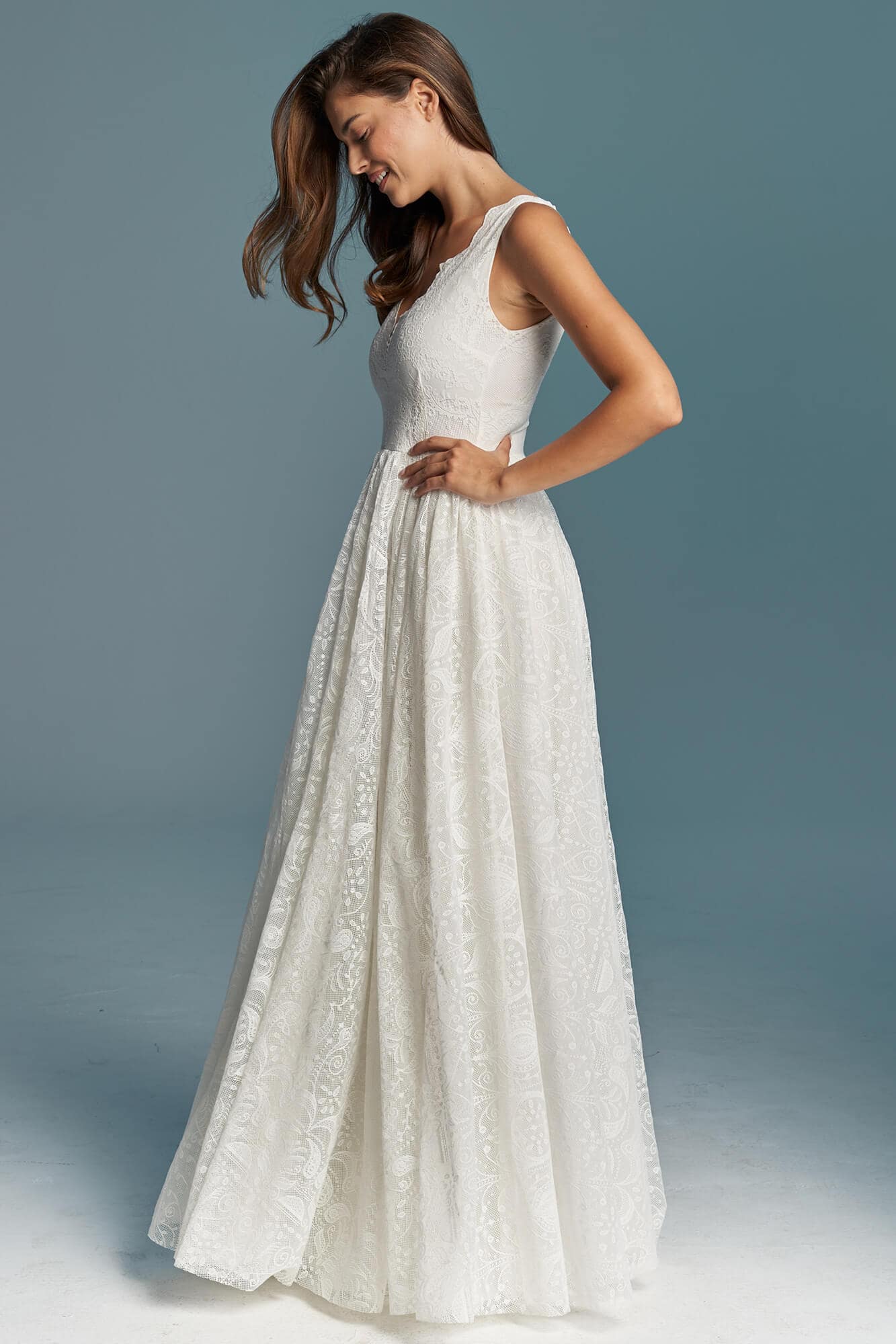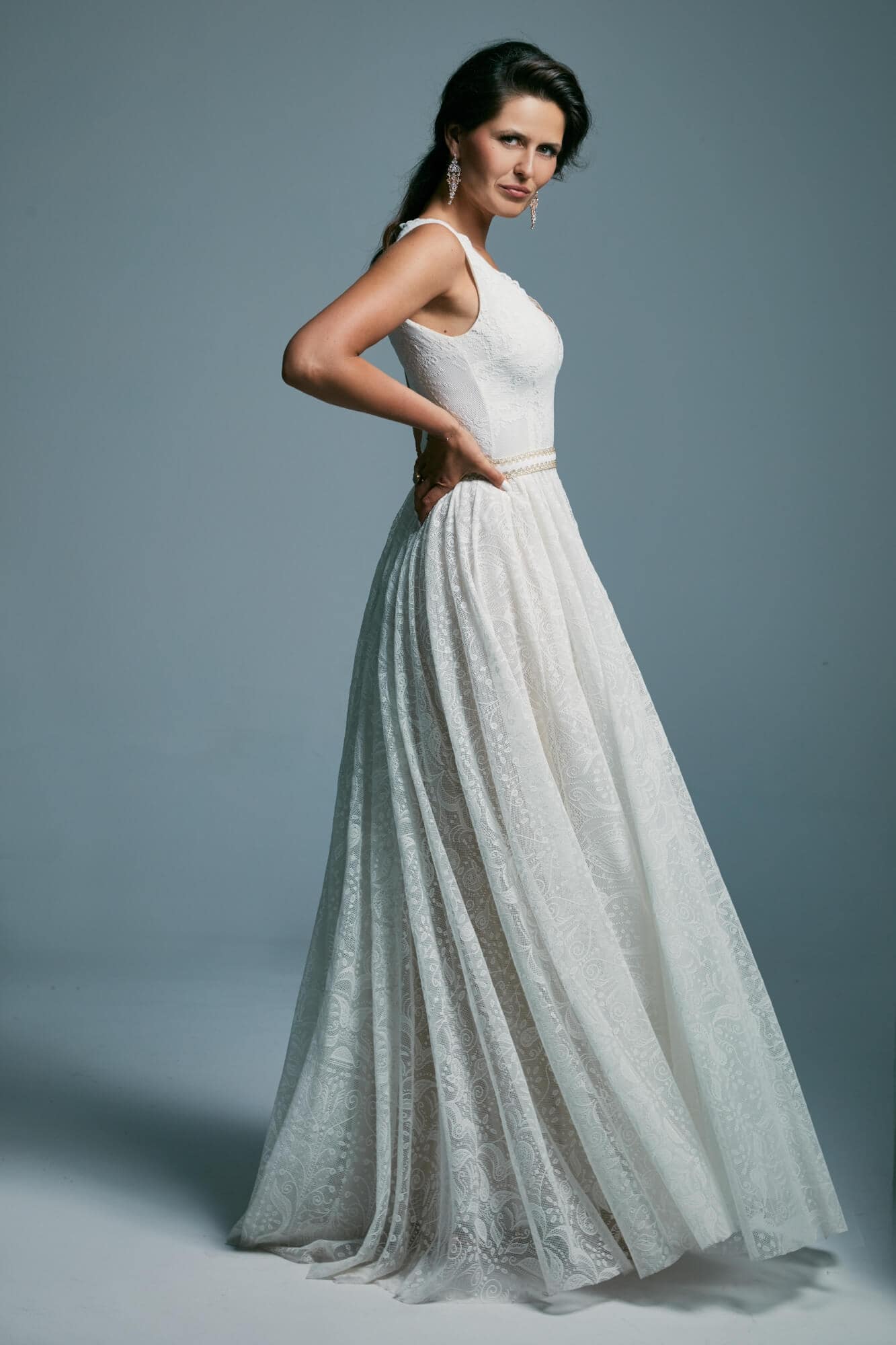 Uszyta ze sprawdzonych i przetestowanych przez nas materiałów. Używane przez nas koronki są mięciutkie, a dzięki swej lekkości cudownie układają się na sylwetce i pięknie wirują w tańcu. Ich elastyczność sprawia, że pracują z Twoim ciałem. Zapewniają komfort rosnącemu ciążowemu brzuszkowi. Praktycznie wszystkie nasze koronki są łatwe do prania w domowej pralce i niegniotące, dzięki czemu swoją suknię spokojnie możesz spakować do walizki i zabrać na romantyczną sesję poślubną.
