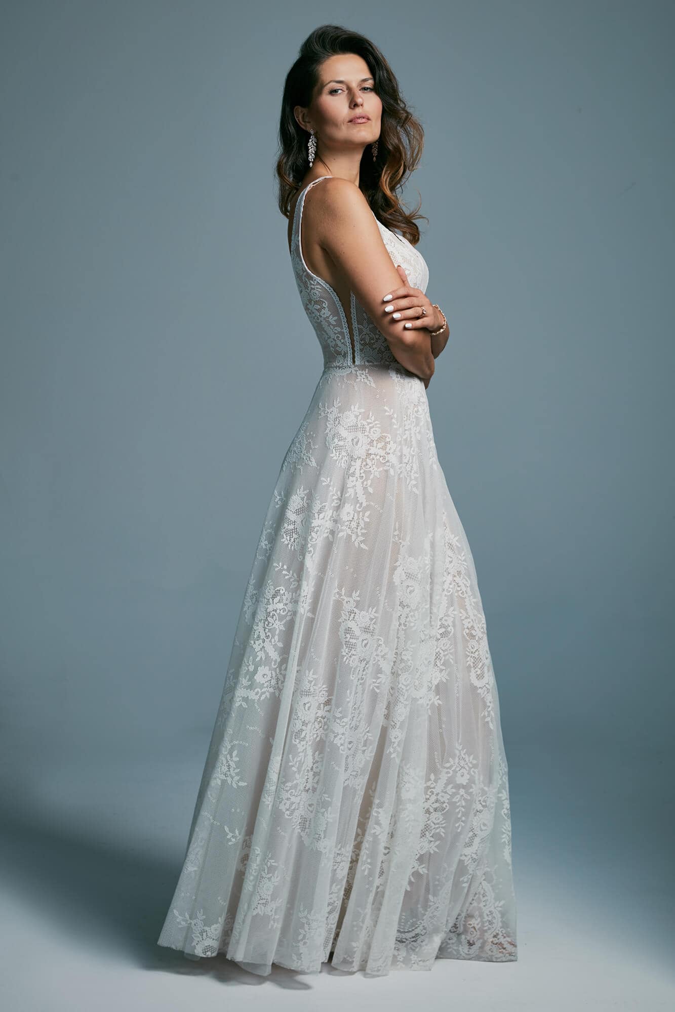 Uszyta ze sprawdzonych i przetestowanych przez nas materiałów. Używane przez nas koronki są mięciutkie, a dzięki swej lekkości cudownie układają się na sylwetce i pięknie wirują w tańcu. Ich elastyczność sprawia, że pracują z Twoim ciałem. Zapewniają komfort rosnącemu ciążowemu brzuszkowi. Praktycznie wszystkie nasze koronki są łatwe do prania w domowej pralce i niegniotące, dzięki czemu swoją suknię spokojnie możesz spakować do walizki i zabrać na romantyczną sesję poślubną.