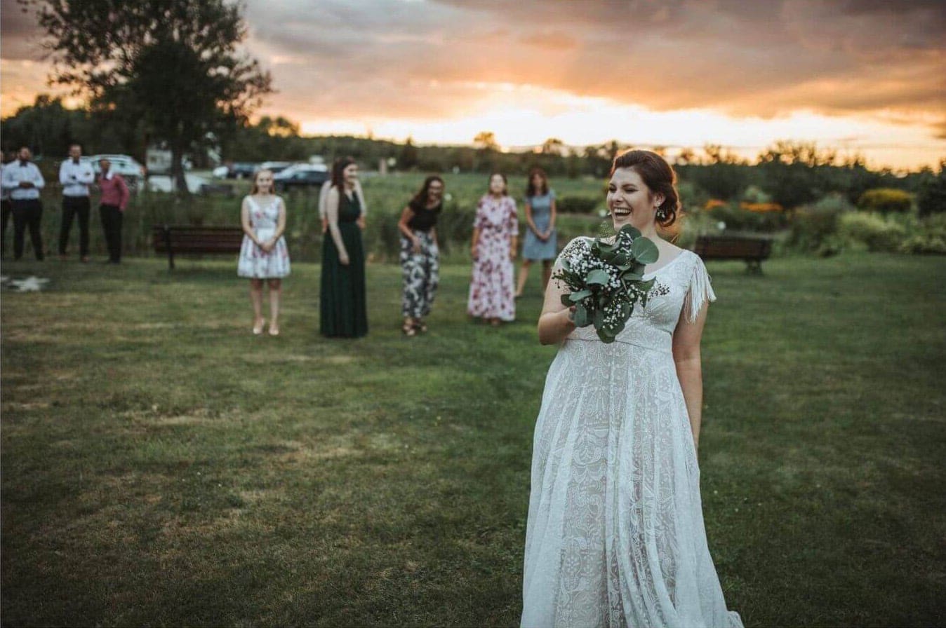 Przed wizytą ciężką było mi sobie wyobrazić jak można stworzyć piękną suknię w jeden dzień. Teraz wiem, że jest to możliwe dzięki niesamowitej mieszance talentu, zmysłu artystycznego, pięknych materiałów i cięzkiej pracy. Marta ma niesamowite oko jeśli chodzi o dobranie odpowiedniej sukni do typu sylwetki i urody. Bardzo dziękuję całemu zespołowi za stworzenie pięknej sukni. Polecam bardzo bardzo!