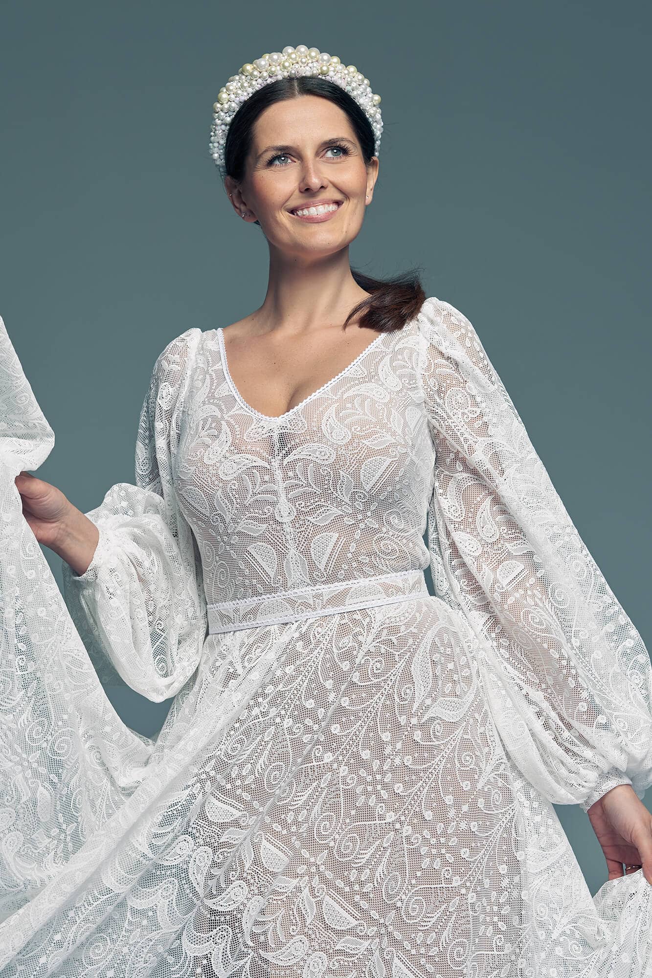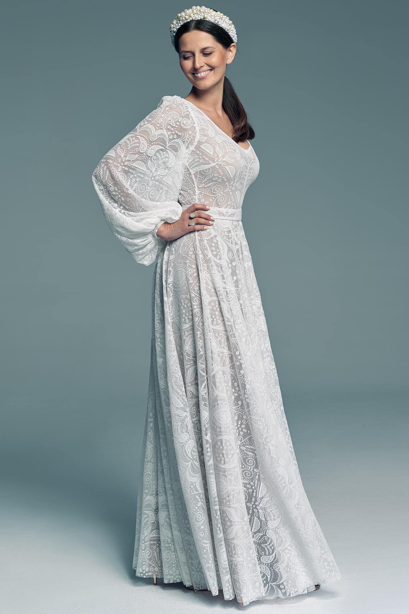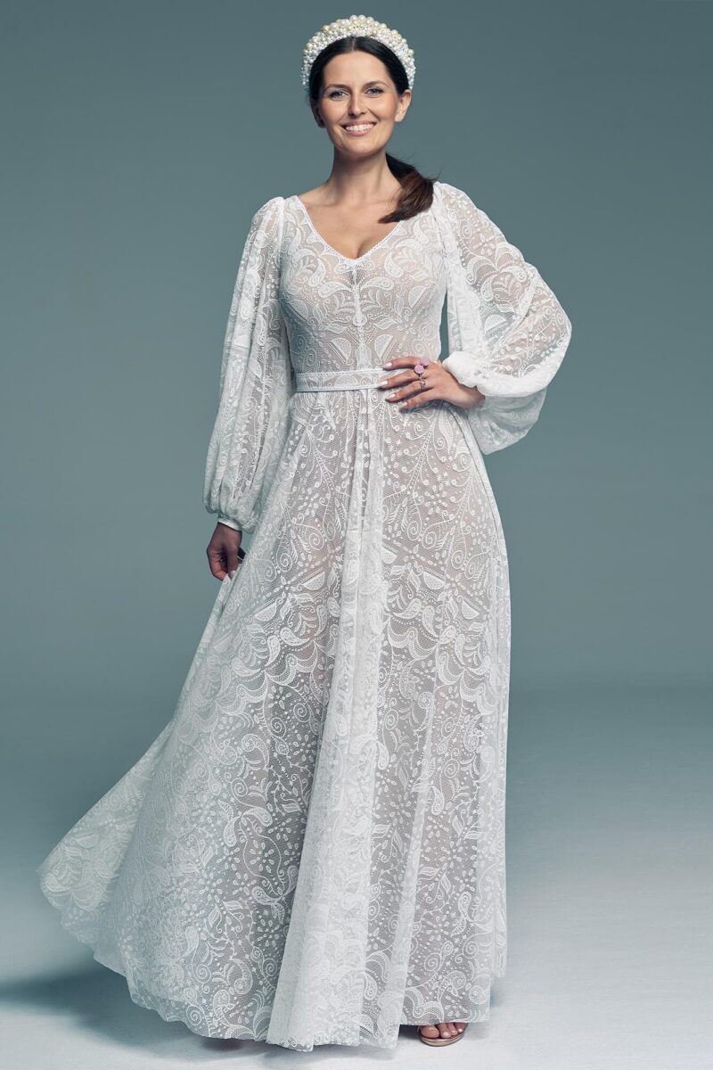 Uszyta ze sprawdzonych i przetestowanych przez nas materiałów. Używane przez nas koronki są mięciutkie, a dzięki swej lekkości cudownie układają się na sylwetce i pięknie wirują w tańcu. Ich elastyczność sprawia, że pracują z Twoim ciałem. Zapewniają komfort rosnącemu ciążowemu brzuszkowi. Praktycznie wszystkie nasze koronki są łatwe do prania w domowej pralce i niegniotące, dzięki czemu swoją suknię spokojnie możesz spakować do walizki i zabrać na romantyczną sesję poślubną.