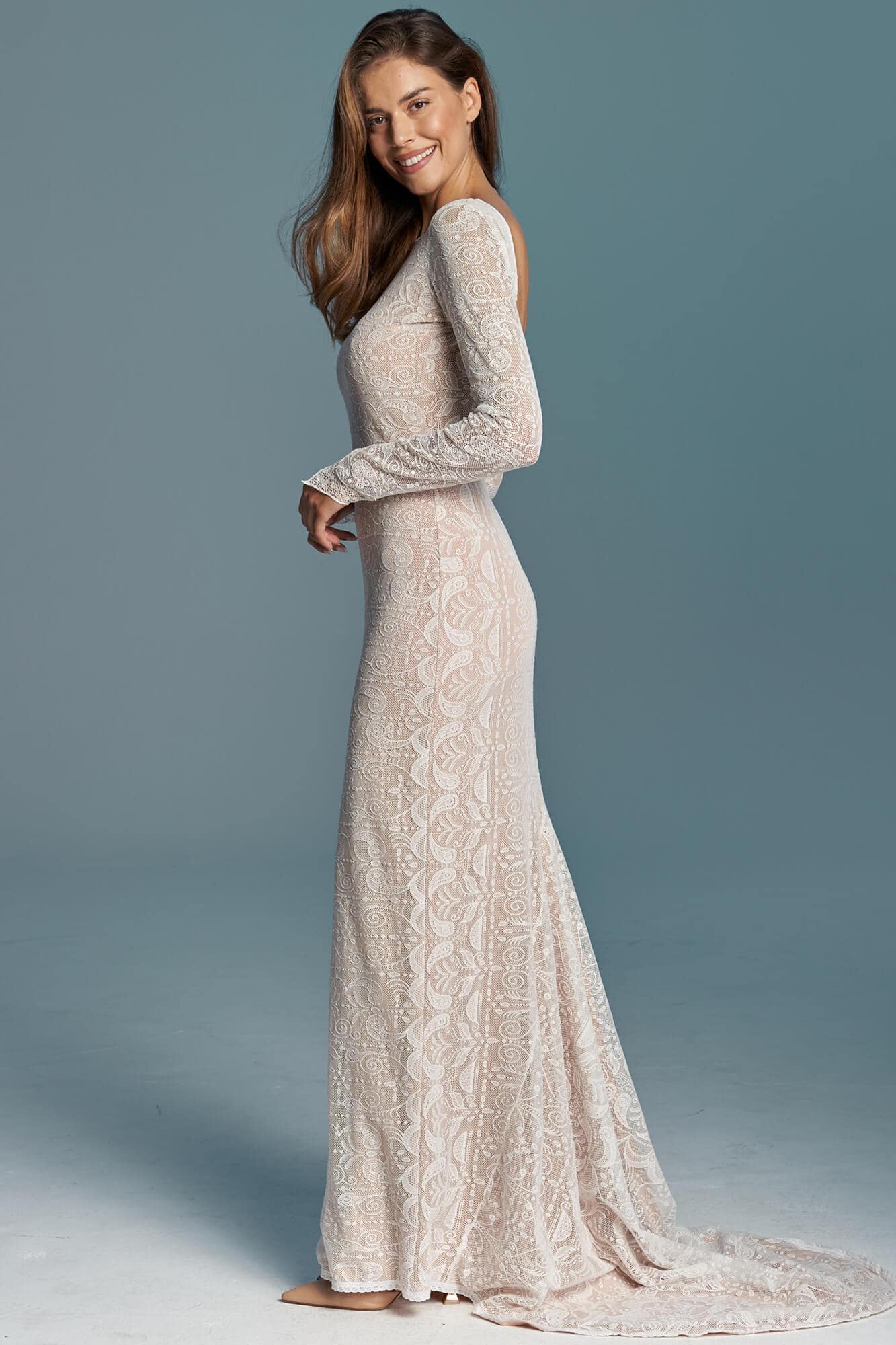 Uszyta ze sprawdzonych i przetestowanych przez nas materiałów. Używane przez nas koronki są mięciutkie, a dzięki swej lekkości cudownie układają się na sylwetce i pięknie wirują w tańcu. Ich elastyczność sprawia, że pracują z Twoim ciałem. Zapewniają komfort rosnącemu ciążowemu brzuszkowi. Praktycznie wszystkie nasze koronki są łatwe do prania w domowej pralce i niegniotące, dzięki czemu swoją suknię spokojnie możesz spakować do walizki i zabrać na romantyczną sesję poślubną.
