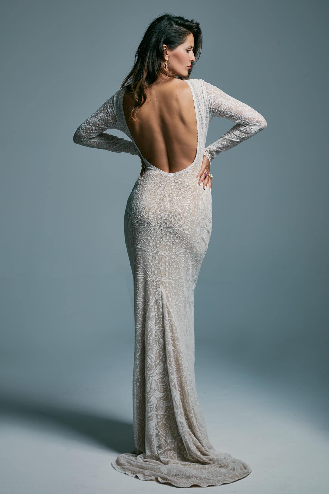 Ta suknia to model wyjściowy - możemy w niej zmienić praktycznie wszystko! Pogłębić lub spłycić dekolt, zmienić jego wykończenie, kształt, dodać lub odjąć falbankę czy frędzle. Rękawy mogą być dłuższe lub krótsze, mieć inny kształt niż te na zdjęciu. Może też nie być ich wcale. Tiul w spódnicy można dodać (lub odjąć) na wierzchu, albo pod spodem. Podszewka może być długa lub krótka w odcieniach bieli i beżu. Rozcięcie na nogę i tren można dodać lub usunąć praktycznie w każdym modelu.