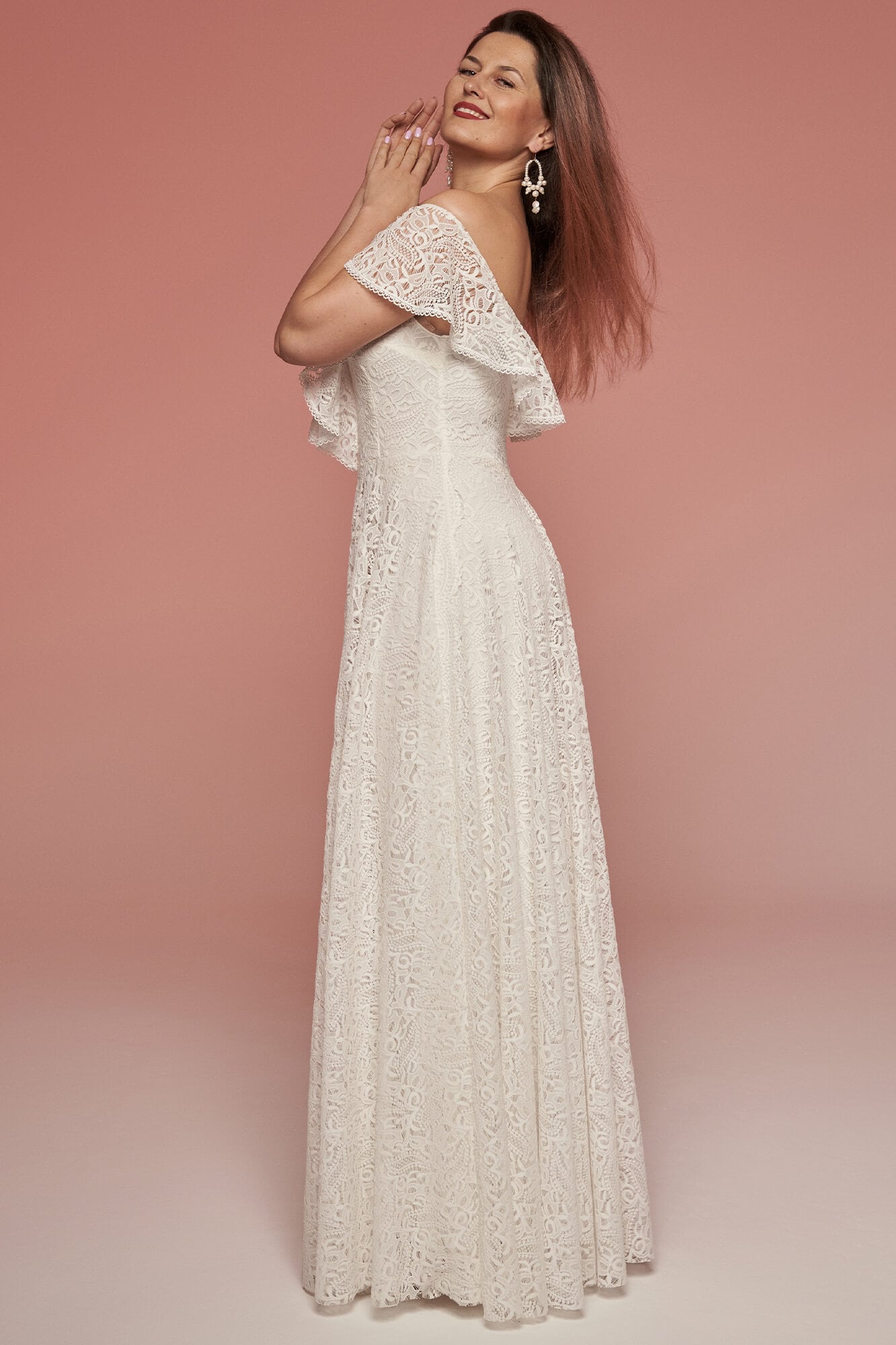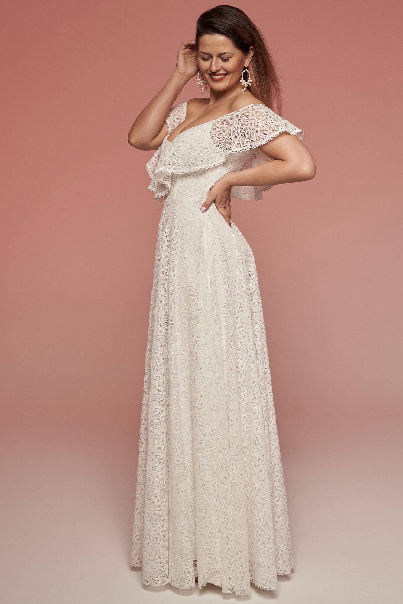 Uszyta ze sprawdzonych i przetestowanych przez nas materiałów. Używane przez nas koronki są mięciutkie, a dzięki swej lekkości cudownie układają się na sylwetce i pięknie wirują w tańcu. Ich elastyczność sprawia, że pracują z Twoim ciałem. Zapewniają komfort rosnącemu ciążowemu brzuszkowi. Praktycznie wszystkie nasze koronki są łatwe do prania w domowej pralce i niegniotące, dzięki czemu swoją suknię spokojnie możesz spakować do walizki i zabrać na romantyczną sesję poślubną.