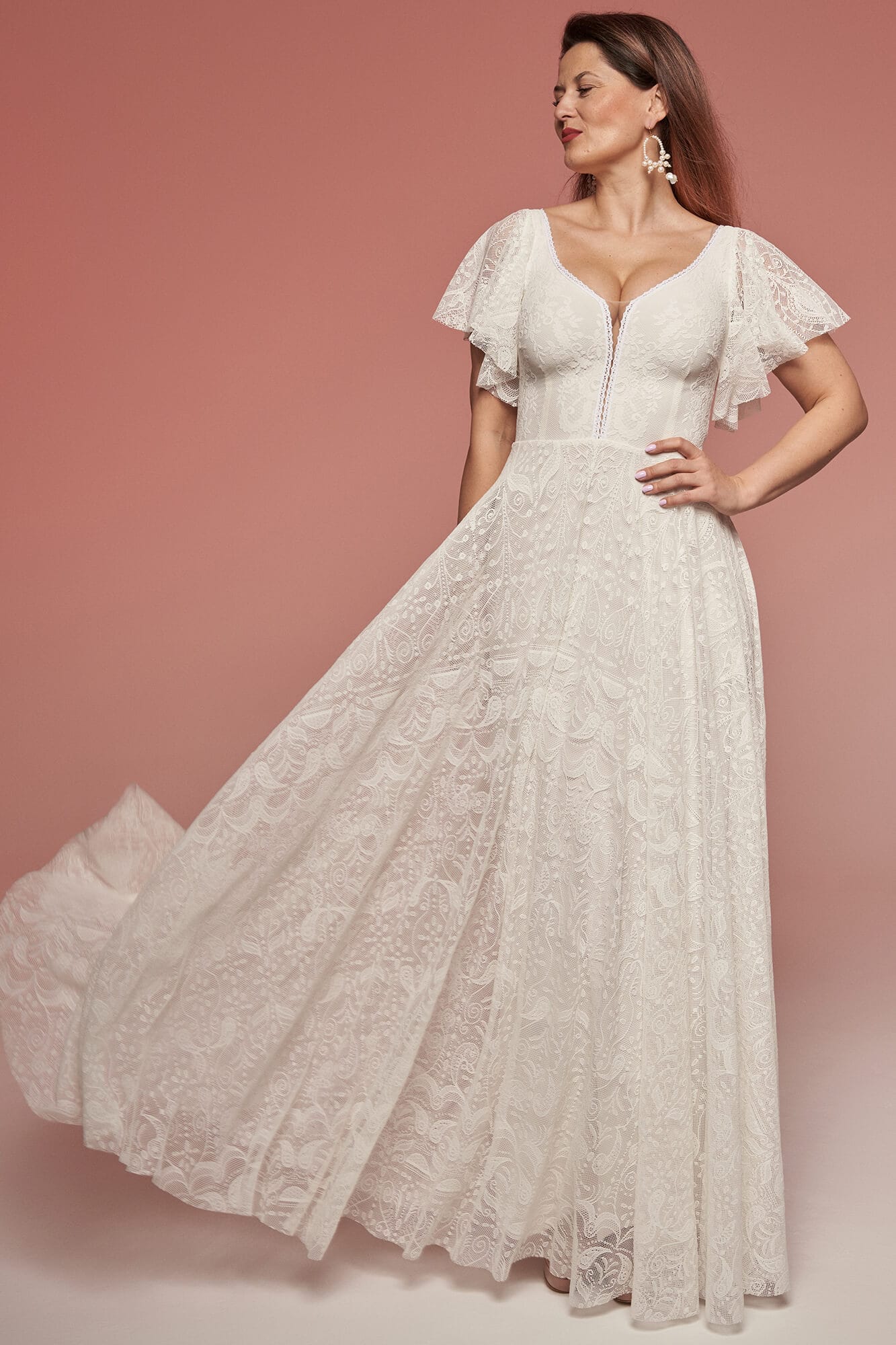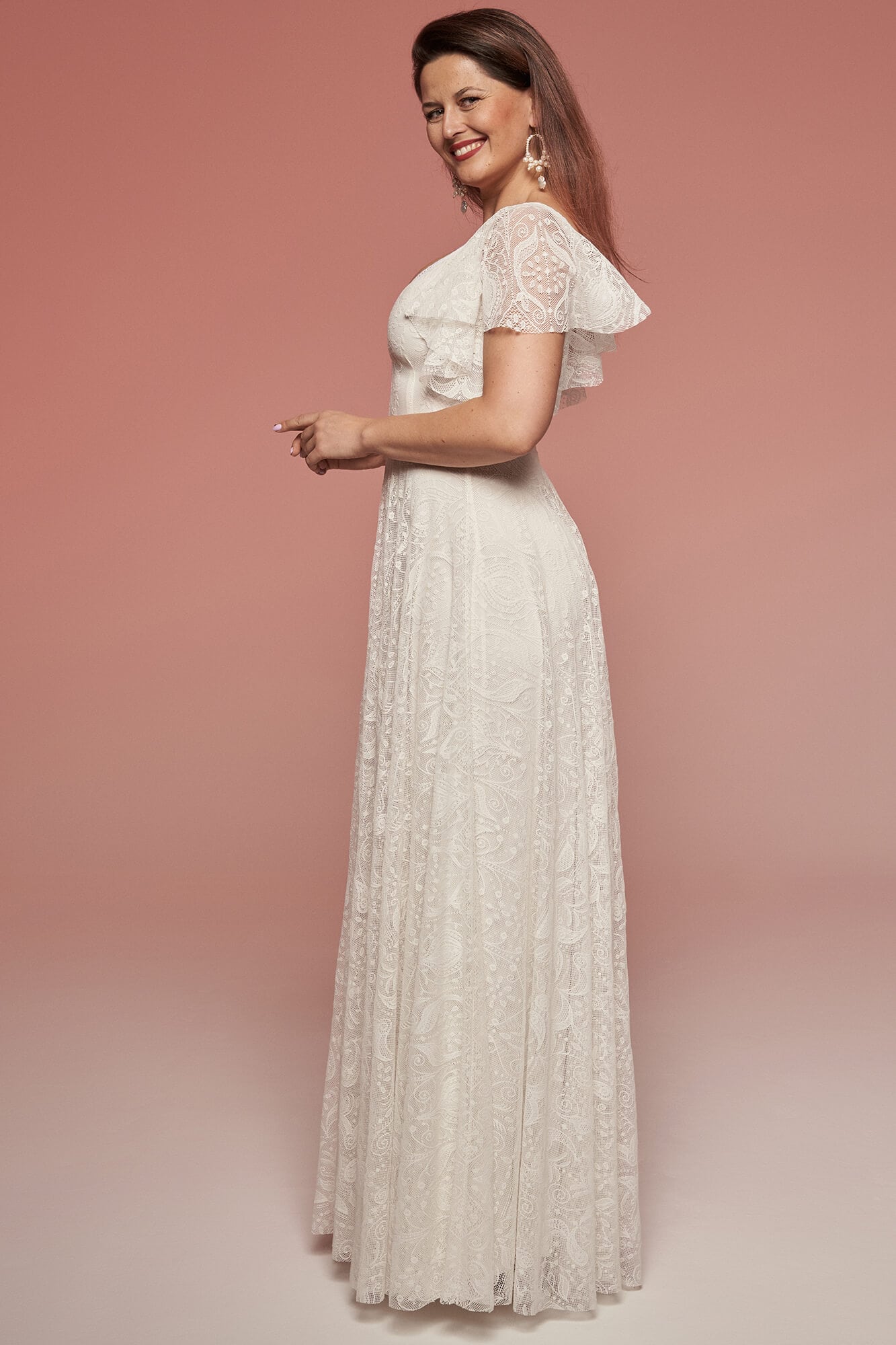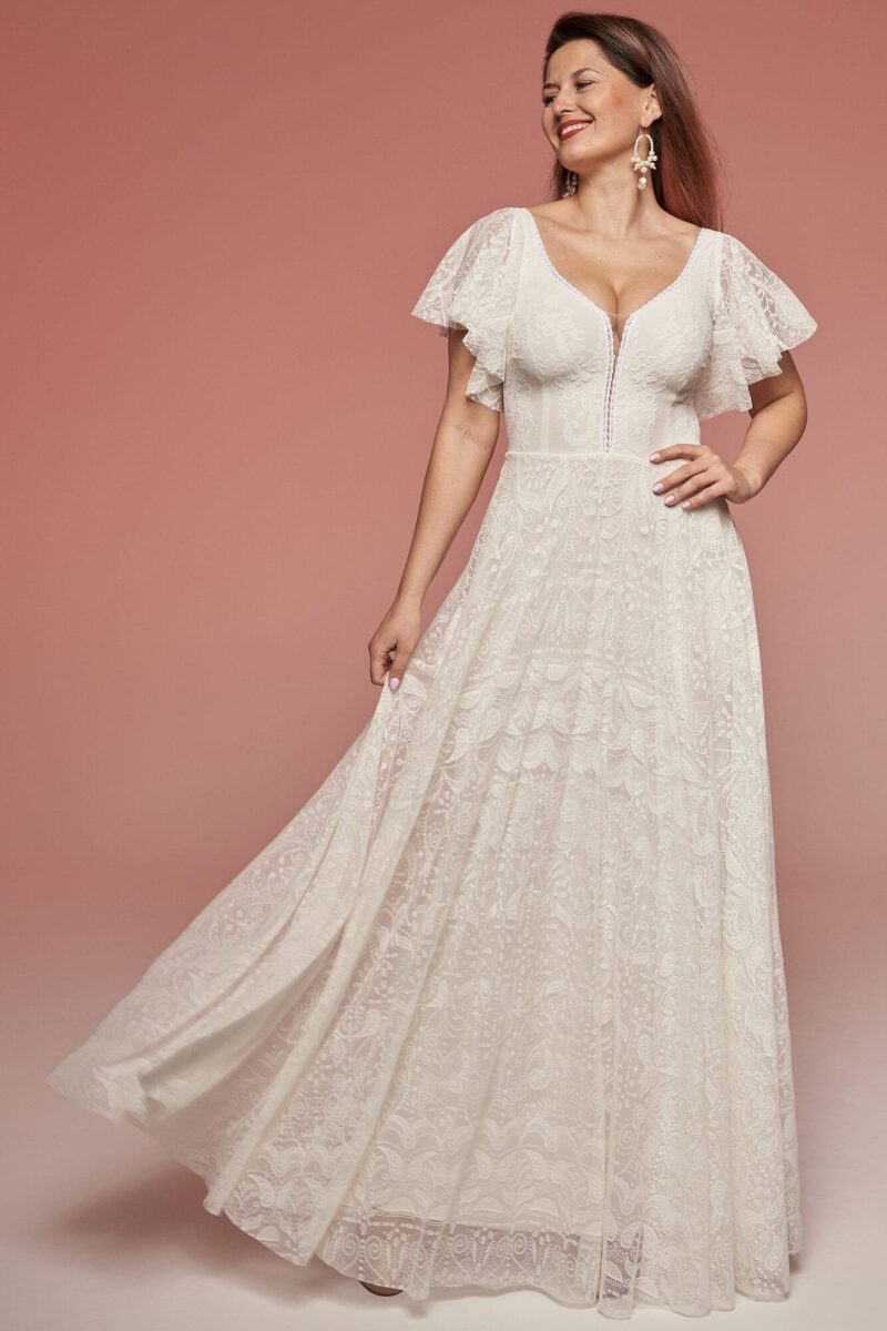 Uszyta ze sprawdzonych i przetestowanych przez nas materiałów. Używane przez nas koronki są mięciutkie, a dzięki swej lekkości cudownie układają się na sylwetce i pięknie wirują w tańcu. Ich elastyczność sprawia, że pracują z Twoim ciałem. Zapewniają komfort rosnącemu ciążowemu brzuszkowi. Praktycznie wszystkie nasze koronki są łatwe do prania w domowej pralce i niegniotące, dzięki czemu swoją suknię spokojnie możesz spakować do walizki i zabrać na romantyczną sesję poślubną.