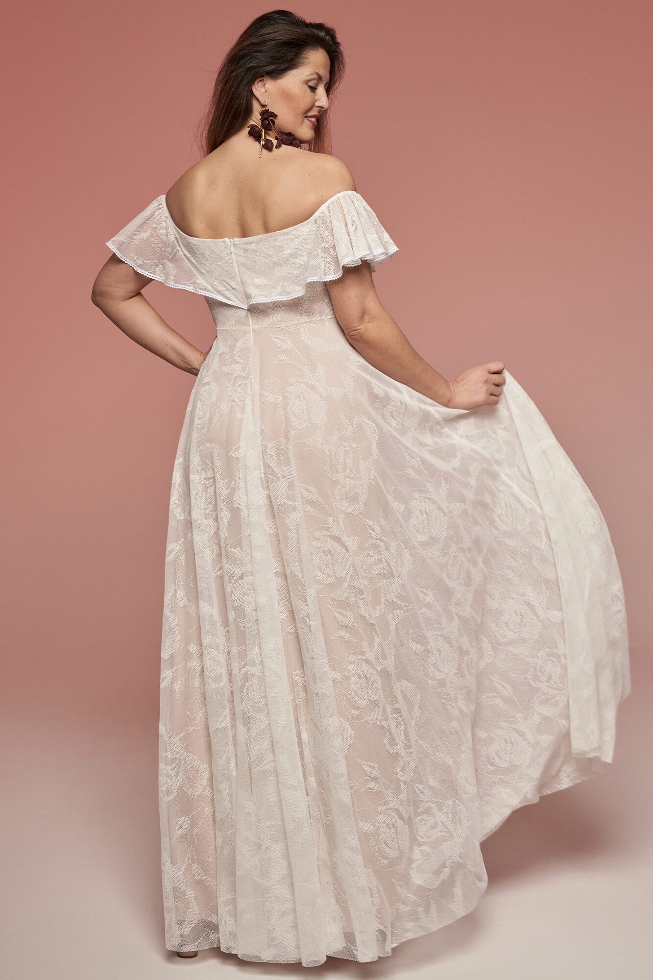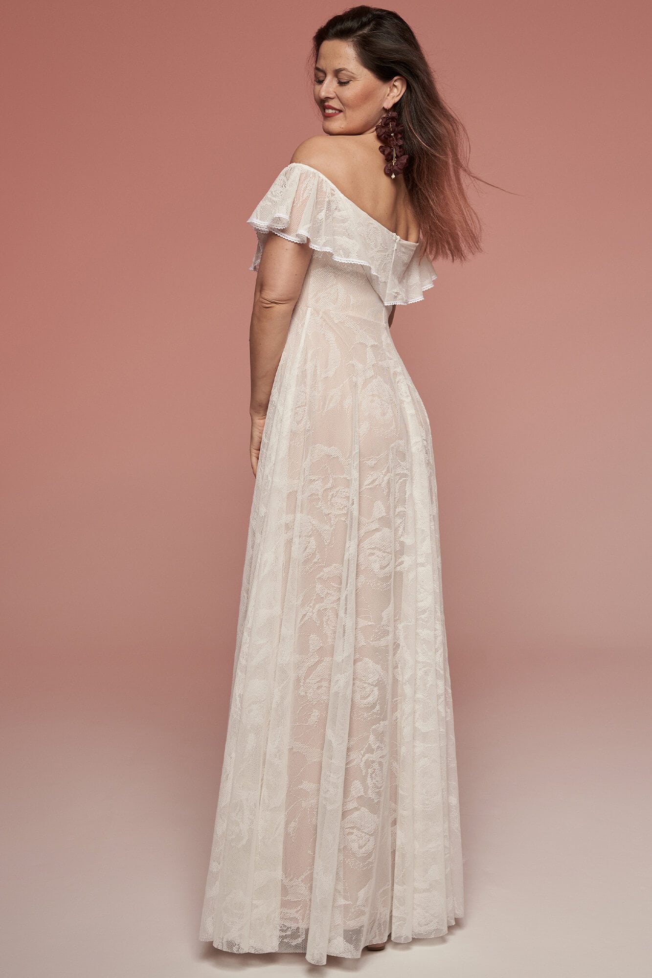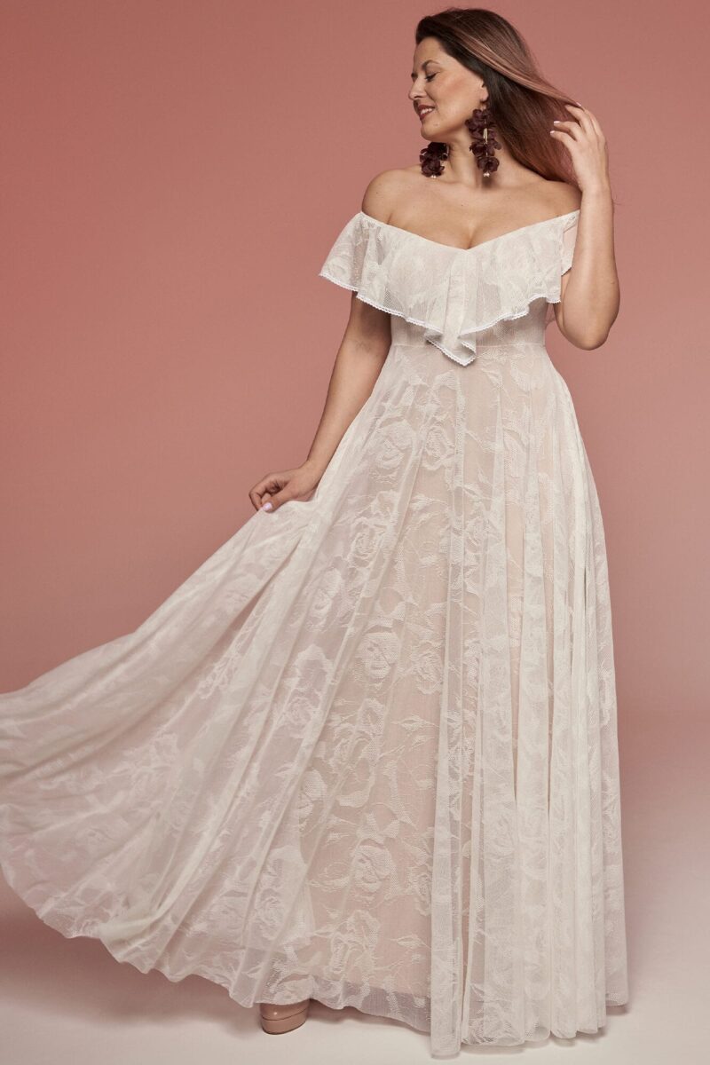 Uszyta ze sprawdzonych i przetestowanych przez nas materiałów. Używane przez nas koronki są mięciutkie, a dzięki swej lekkości cudownie układają się na sylwetce i pięknie wirują w tańcu. Ich elastyczność sprawia, że pracują z Twoim ciałem. Zapewniają komfort rosnącemu ciążowemu brzuszkowi. Praktycznie wszystkie nasze koronki są łatwe do prania w domowej pralce i niegniotące, dzięki czemu swoją suknię spokojnie możesz spakować do walizki i zabrać na romantyczną sesję poślubną.