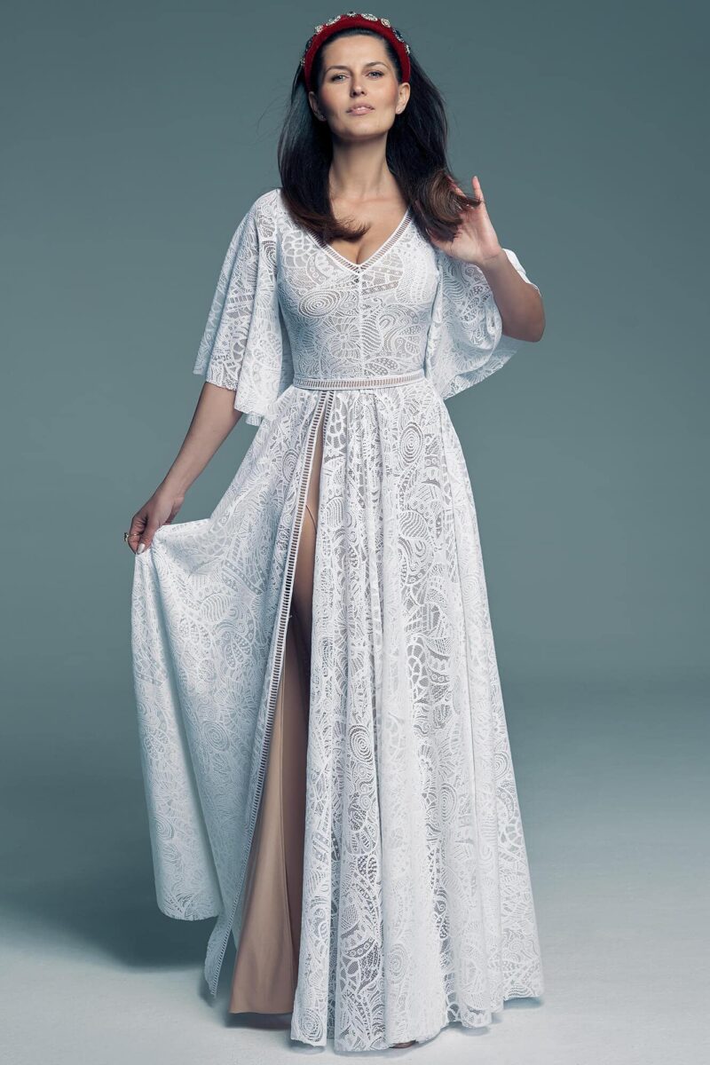 Uszyta ze sprawdzonych i przetestowanych przez nas materiałów. Używane przez nas koronki są mięciutkie, a dzięki swej lekkości cudownie układają się na sylwetce i pięknie wirują w tańcu. Ich elastyczność sprawia, że pracują z Twoim ciałem. Zapewniają komfort rosnącemu ciążowemu brzuszkowi. Praktycznie wszystkie nasze koronki są łatwe do prania w domowej pralce i niegniotące, dzięki czemu swoją suknię spokojnie możesz spakować do walizki i zabrać na romantyczną sesję poślubną.