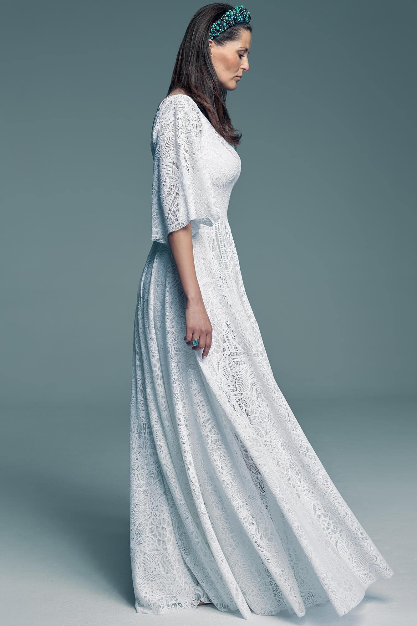 Uszyta ze sprawdzonych i przetestowanych przez nas materiałów. Używane przez nas koronki są mięciutkie, a dzięki swej lekkości cudownie układają się na sylwetce i pięknie wirują w tańcu. Ich elastyczność sprawia, że pracują z Twoim ciałem. Zapewniają komfort rosnącemu ciążowemu brzuszkowi. Praktycznie wszystkie nasze koronki są łatwe do prania w domowej pralce i niegniotące, dzięki czemu swoją suknię spokojnie możesz spakować do walizki i zabrać na romantyczną sesję poślubną.