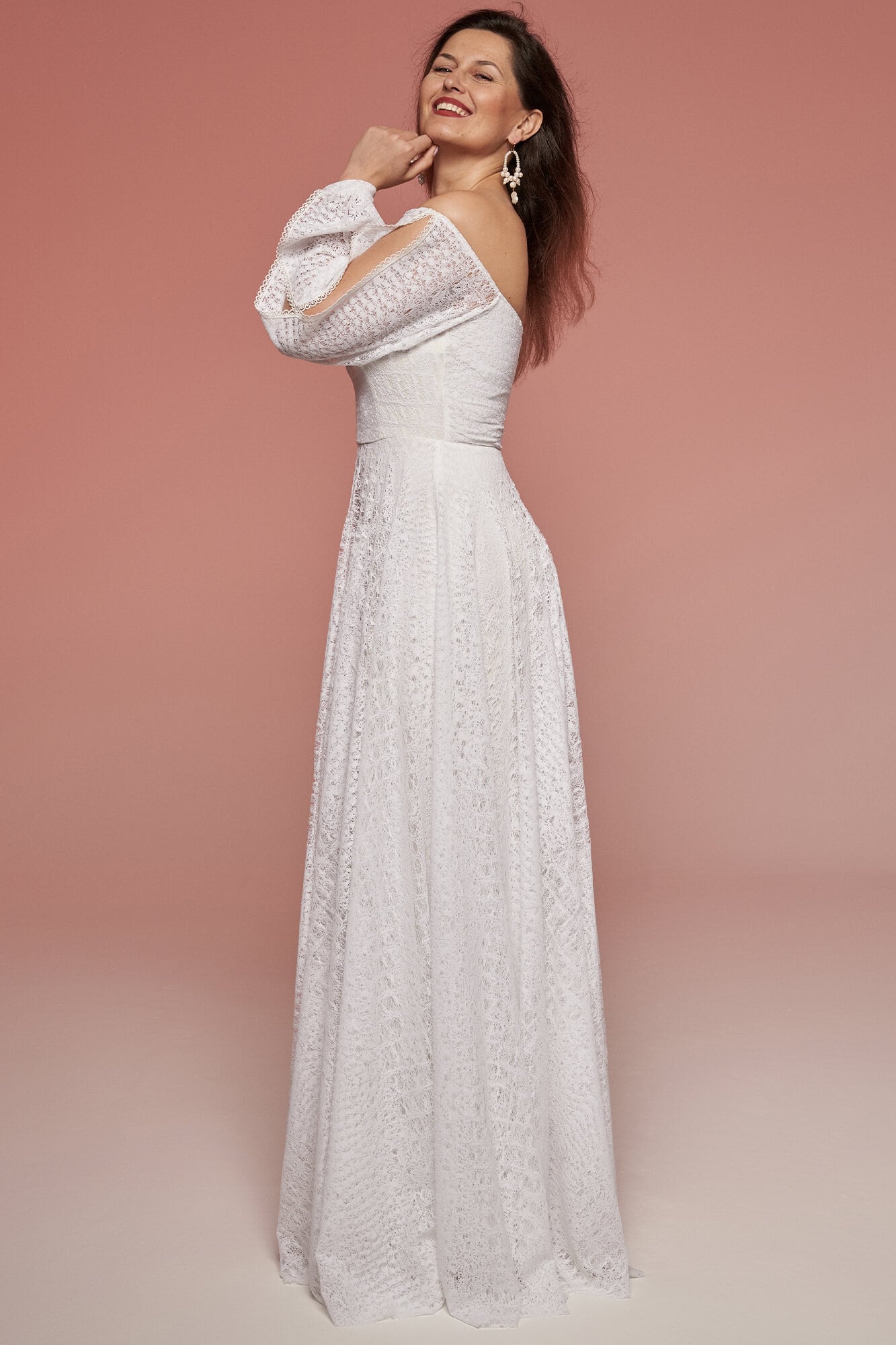 Twoją wymarzoną suknię uszyjemy w jeden dzień – rano mierzymy i dobieramy fason, kolor i wykończenia, po południu masz krótką przymiarkę techniczną (łączymy na Tobie elementy), a na koniec skracamy suknię i odbierasz gotową kreację tego samego dnia! Dla nas każda sylwetka jest „łatwa” – czy jesteś wysoka, czy niska, drobna czy masz pełne kształty, masz obfity biust czy ledwie widoczny, asymetrię ciała czy niepełnosprawności – uszyjemy suknię na Twoją figurę i na Twoją miarę!