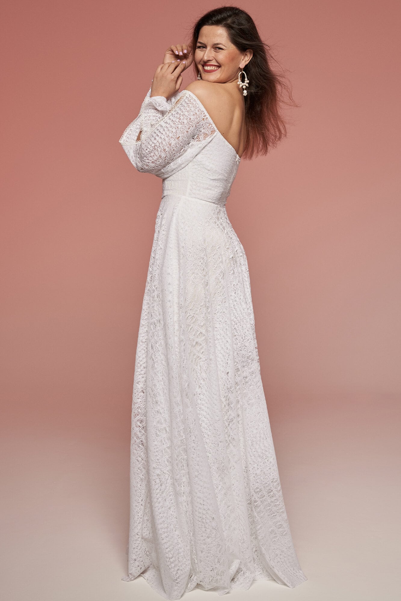 Uszyta ze sprawdzonych i przetestowanych przez nas materiałów. Używane przez nas koronki są mięciutkie, a dzięki swej lekkości cudownie układają się na sylwetce i pięknie wirują w tańcu. Ich elastyczność sprawia, że pracują z Twoim ciałem. Zapewniają komfort rosnącemu ciążowemu brzuszkowi. Praktycznie wszystkie nasze koronki są łatwe do prania w domowej pralce i niegniotące, dzięki czemu swoją suknię spokojnie możesz spakować do walizki i zabrać na romantyczną sesję poślubną.