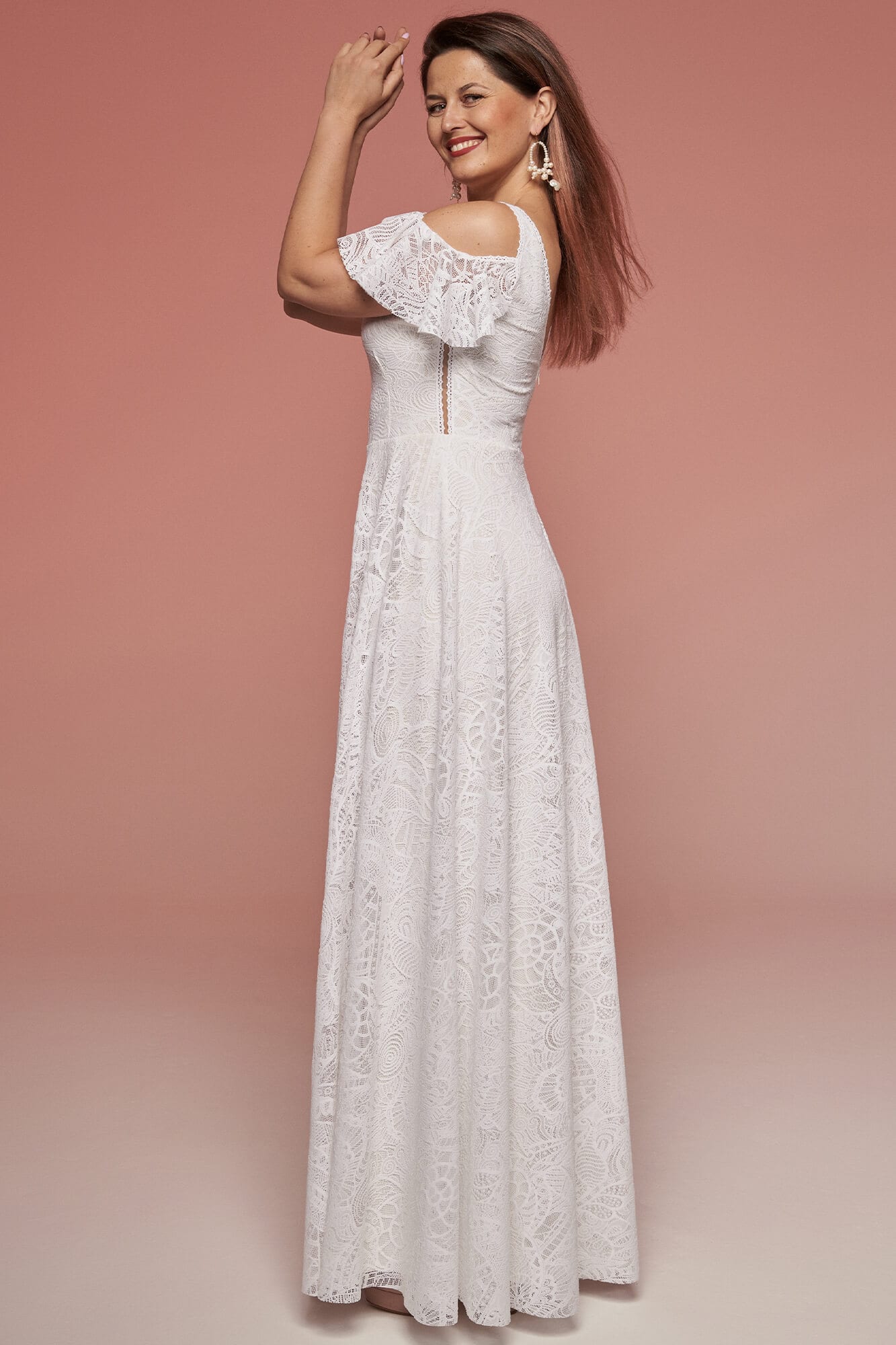 Uszyta ze sprawdzonych i przetestowanych przez nas materiałów. Używane przez nas koronki są mięciutkie, a dzięki swej lekkości cudownie układają się na sylwetce i pięknie wirują w tańcu. Ich elastyczność sprawia, że pracują z Twoim ciałem. Zapewniają komfort rosnącemu ciążowemu brzuszkowi. Praktycznie wszystkie nasze koronki są łatwe do prania w domowej pralce i niegniotące, dzięki czemu swoją suknię spokojnie możesz spakować do walizki i zabrać na romantyczną sesję poślubną.