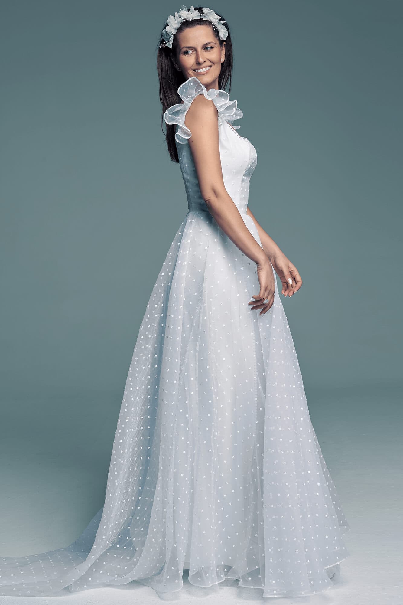 Wiesz, że styl księżniczkowy to Twój styl, ale może nie do końca ten klasyczny. Zdajesz sobie sprawę, że suknia typu „princessa” może być niewygodna i nie chcesz decydować się, ani na brokaty, ani na gorsety? Ta suknia ślubna to księżniczkowa propozycja w wyjątkowym wydaniu – jest piękna, czarująca, słodka, ale przede wszystkim wygodna!